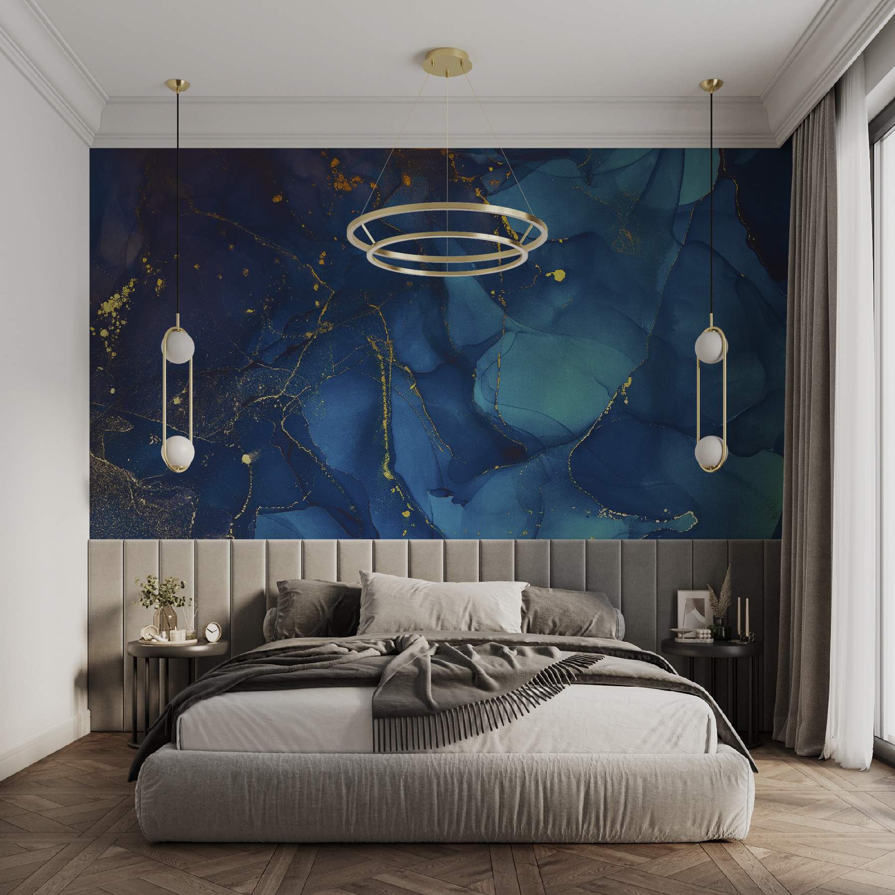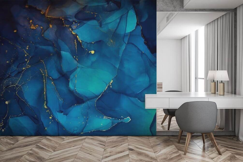 Proměňte jakoukoli místnost pomocí úžasné nástěnné malby “Azure Veined with Luminous Trails”. Představte si, že vejdete do prostoru, kde kolem vás víří uklidňující modrá a vytváří pocit klidu a úžasu. Jemné zlaté stezky se proplétají sytou azurovou barvou a vyvolávají zvědavost a konverzaci. Představte si útulné večery v oblíbeném křesle, teplý nápoj v ruce, zatímco tato nástěnná malba upoutává vaši pozornost – jako snový únik. Je ideální k tomu, aby na vaše stěny vnesla šmrnc barev a osobitosti, díky čemuž se každý pohled bude cítit o něco výjimečněji. Nechte své stěny vyprávět příběh, díky kterému se každý bude cítit jako doma.