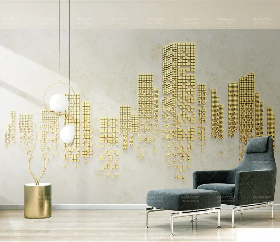 Transform any room into an urban oasis with this stunning “City Skyline” wall mural. Imagine – a sleek skyline crafted from playful little squares, creating a cool 3D effect that’s both contemporary and eye-catching. It’s like living in a modern art gallery without ever leaving home! Guests will wonder if they’ve stumbled into a fashionable city loft. The warm hues invite you in, making it perfect for cozy gatherings or those Netflix binge sessions. Plus, it sparks conversations, with folks pondering the story behind those snazzy buildings. It’s not just decor; it’s a vibe—a unique blend of art and architecture that elevates any space. Hang it up and let the cityscape whisk you away!