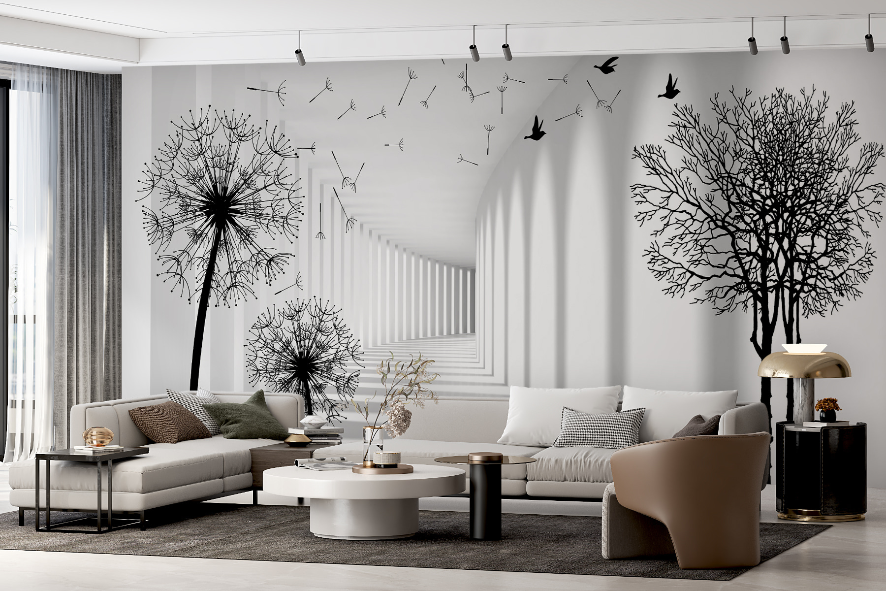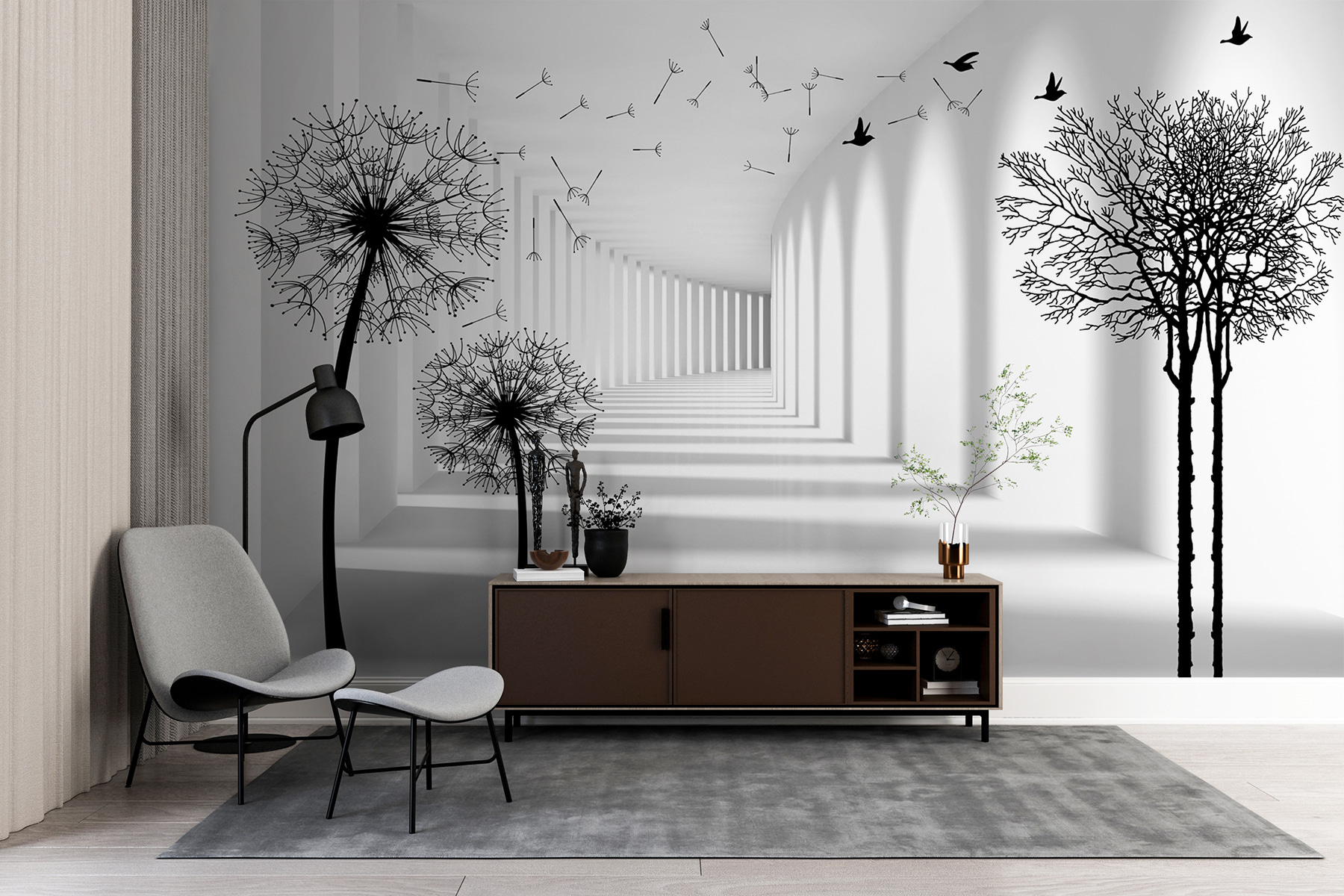 Představte si, že vstoupíte do místnosti a přivítá vás rozmarný tanec pampelišek! Tato nástěnná malba s názvem “Černá silueta pampelišky” přesně to dokáže – je to jako zachytit jemný, bezstarostný den v interiéru. Výrazné černé siluety na světlém pozadí vytvářejí úžasný kontrast. Skvělé je, že jako by roztahovaly prostor, díky čemuž se každá místnost zdá být větší… a otevřenější. Navíc je na těch plovoucích semínkách něco uklidňujícího, že? Skoro jako byste cítili, jak jimi vane jemný vánek.
