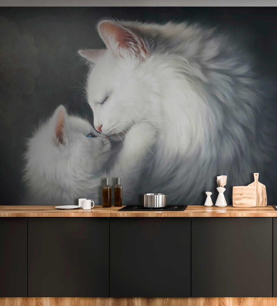 Jen se podívejte na tyhle dva chlupaté miláčky! Tato nástěnná malba “Kočičí náklonnost v té nejlepší podobě” vám úplně roztaje srdce. Perfektně se hodí do každé místnosti, která potřebuje trochu tepla a rozmarů – ať už je to dětský pokoj, útulný čtecí koutek, nebo dokonce obývací pokoj. Představte si, že se každý den probouzíte s tímto rozkošným duem mámy a kotěte… okamžité zlepšení nálady! A hele, kdo by odolal těm měkkým kožíškům a něžnému tulení, že?