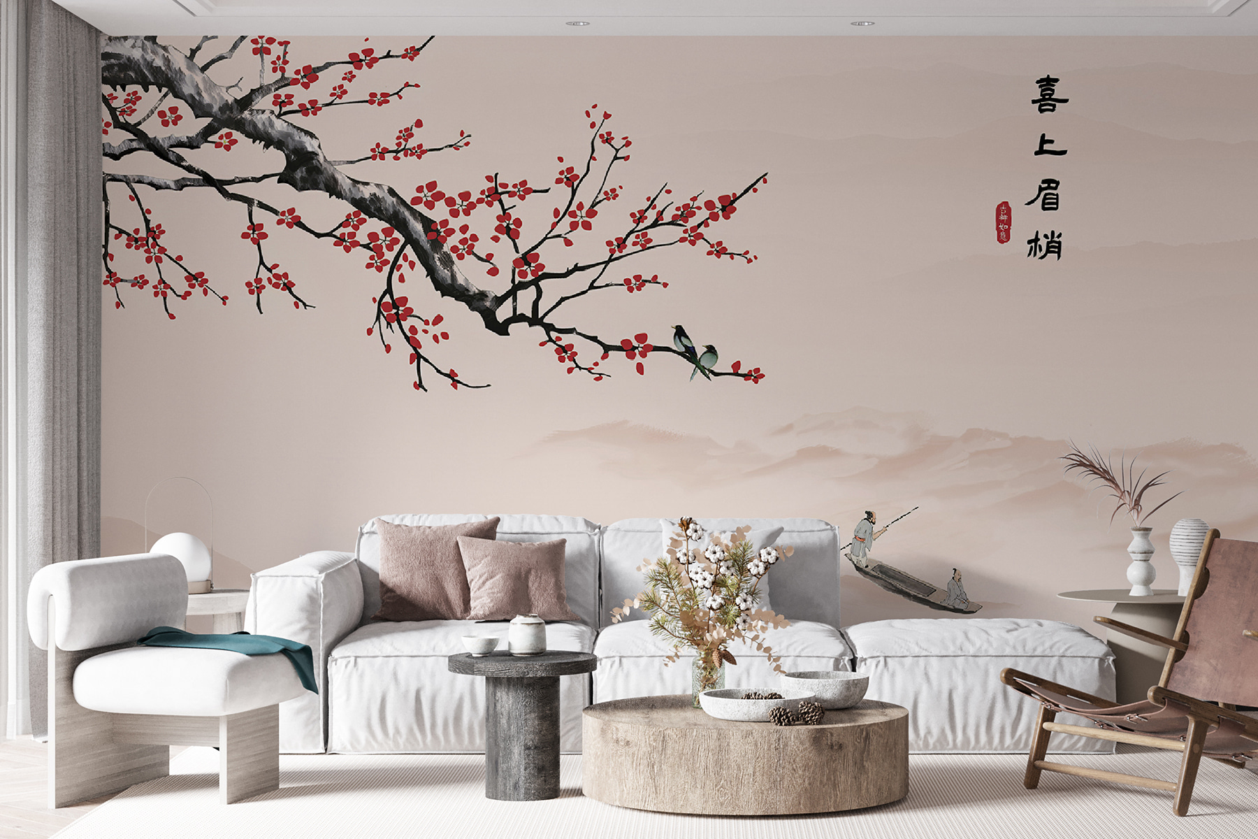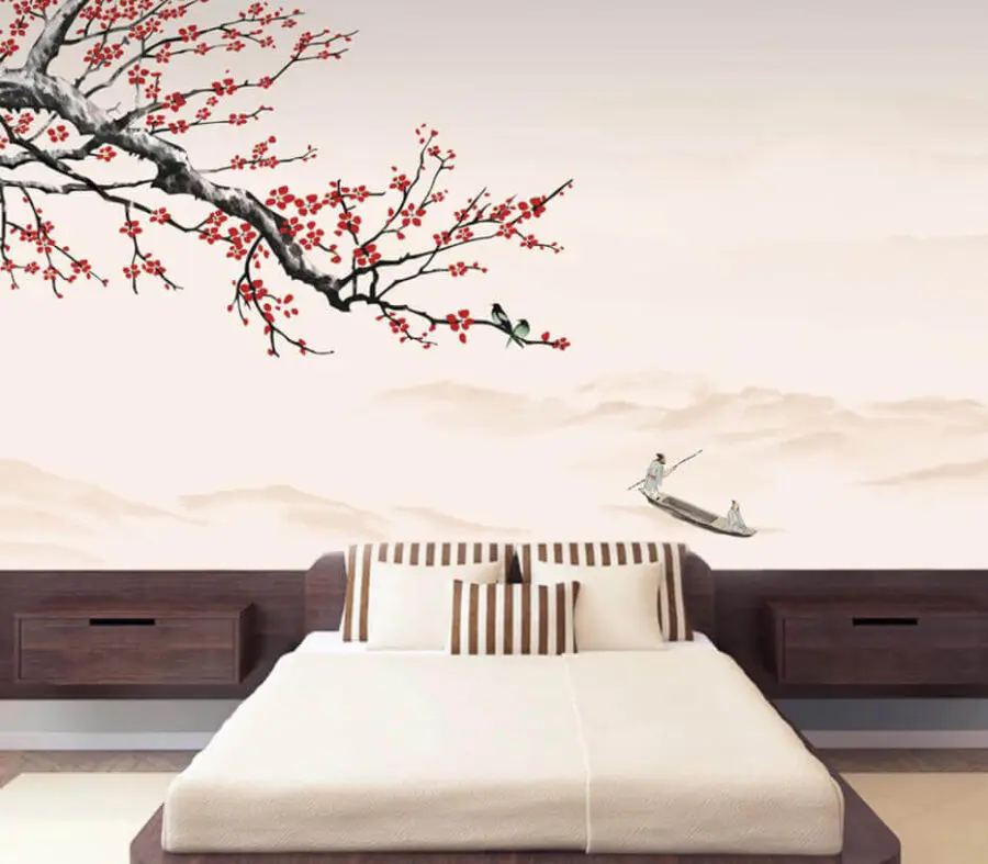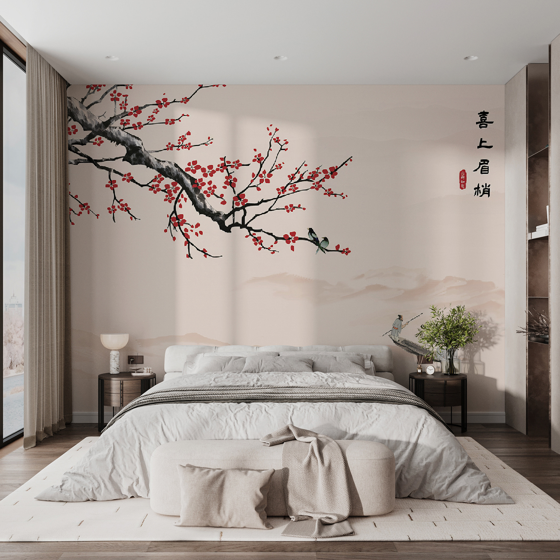 Vyšperkujte svůj prostor touto nástěnnou malbou “Větev stromu s červenými květy”! Představte si, že se probudíte – elegantní větve táhnoucí se přes celou stěnu a rozkvetlé jasně červenými květy. Jako by dotek přírody políbil váš pokoj, zatímco jste spali. Ideální do obývacích pokojů, ložnic nebo třeba do útulného čtecího koutku.