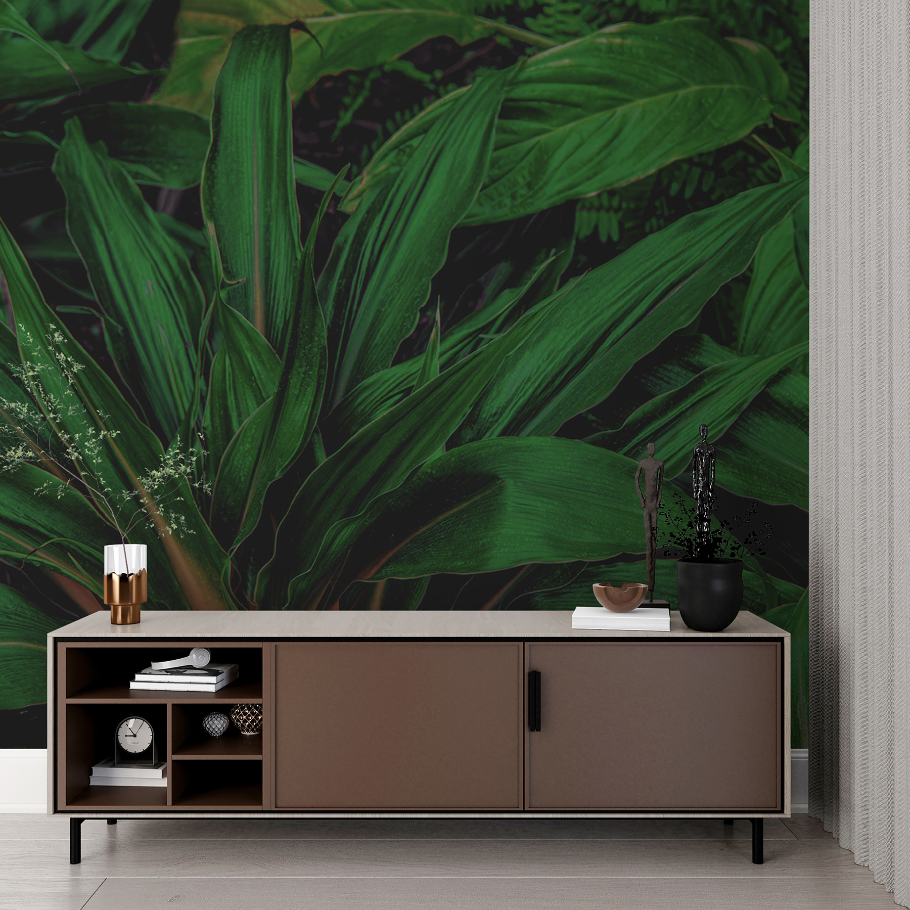 Není to jen tapeta, je to prohlášení. Když vejdete do místnosti vyzdobené touto fototapetou, přivítá vás pocit klidu a dobrodružství – jako každodenní mini dovolená. Ať už se nachází ve vašem obývacím pokoji, kanceláři, nebo dokonce v koupelně, tento design promění prostory v zelené útočiště. Vrstvené listy dodávají hloubku a texturu a vytvářejí téměř hmatatelný 3D efekt. Pravděpodobně se přistihnete, že se nejednou natáhnete, abyste se těchto listů dotkli!