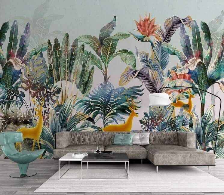 Proměňte svůj prostor v živou džungli díky této úžasné fototapetě s živou skupinou rostlin a hravých zvířat. Představte si, že vstoupíte do svého pokoje a pocítíte příval tropického vzduchu – nebo možná jen pocit klidu. Svěží zeleň a veselá zvířátka zvou do interiéru kousek přírody, takže se každý den budete cítit jako na mini dovolené. Je to jako mít na stěně tajnou zahradu, ideální pro dny, kdy je třeba trochu uniknout. Tato nástěnná malba nejen rozzáří váš prostor, ale také vyvolá úsměvy a rozhovory o krásách přírody. Jen do toho, nechte své stěny mluvit.