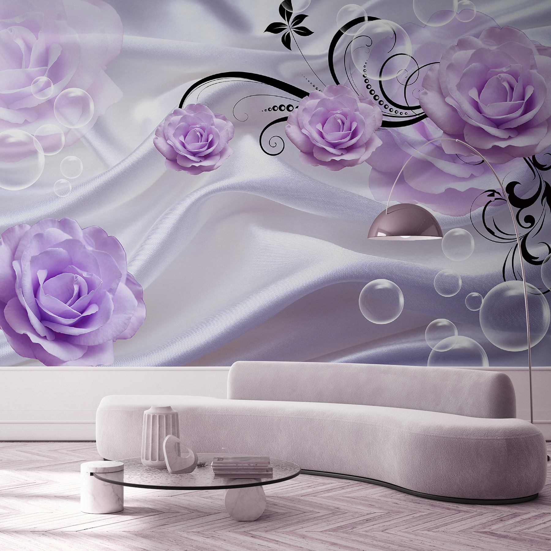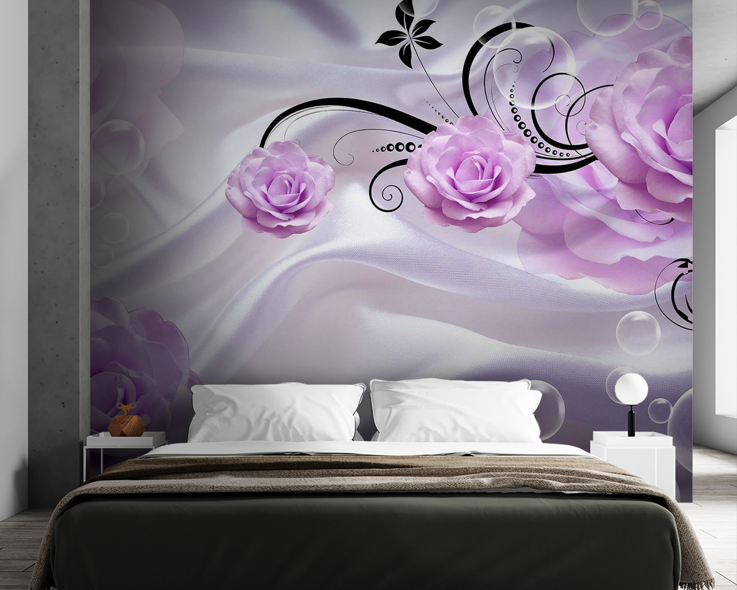 Proměňte obyčejnou stěnu ve snový únik s okouzlující nástěnnou malbou Fialové růže na hedvábném látkovém pozadí. Představte si to: vyzývavé lila květy jemně kaskádovitě padající na měkké pozadí, které dodá teplo a romantiku každé místnosti. Je to jako mít přímo doma tajnou zahradu, kde každý pohled působí jako závan čerstvého vzduchu.