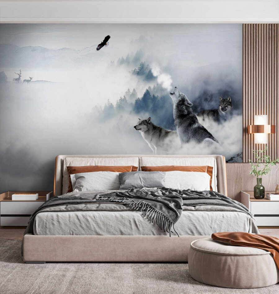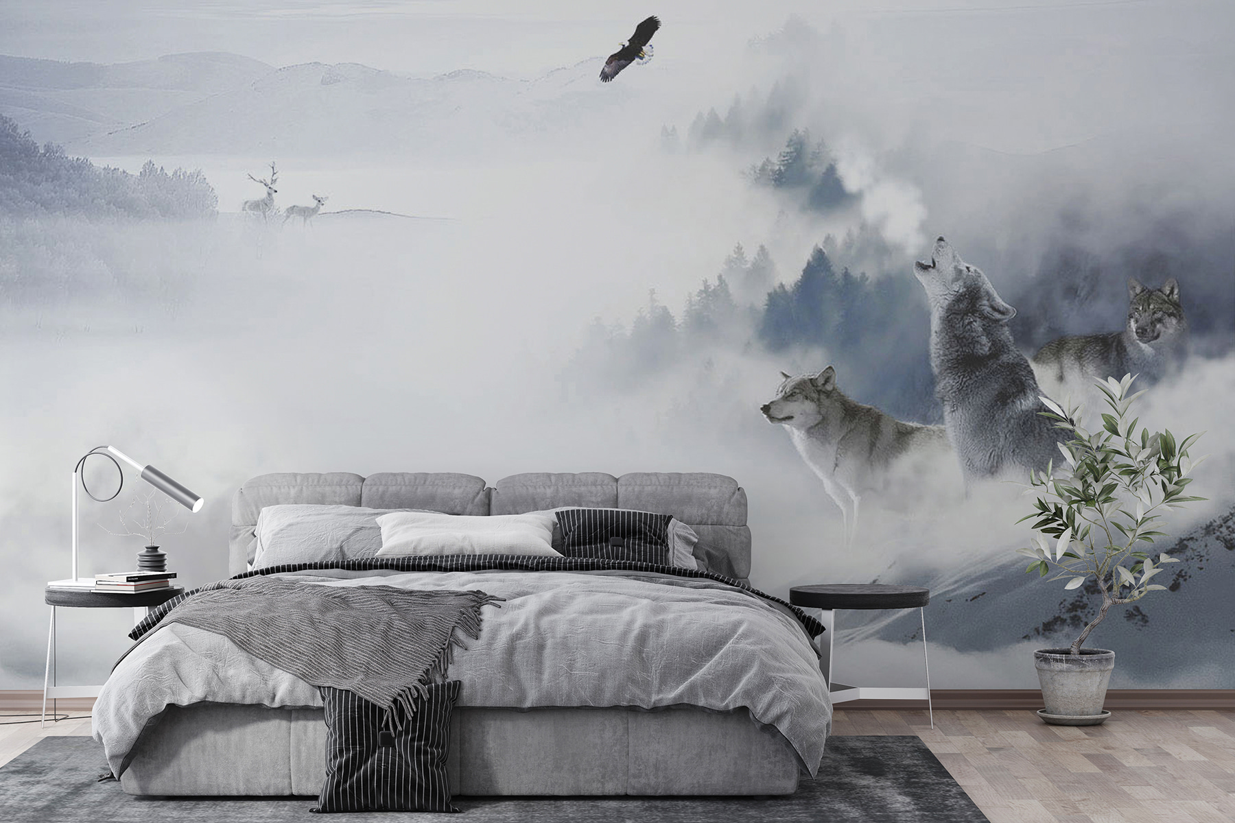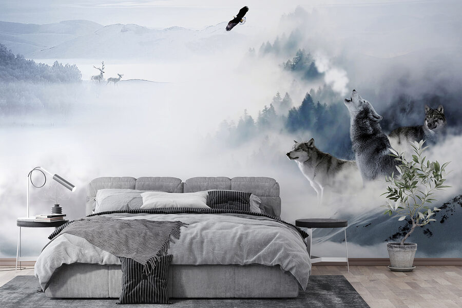 Proměňte svůj prostor pomocí této úchvatné nástěnné malby s vlkem majestátně stojícím na sněhu. Představte si, že vejdete do místnosti, kde vás obklopí nezkrotný duch přírody – tato nástěnná malba přesně to dokáže! Díky jemným odstínům a klidnému pozadí mrazivé krajiny vybízí ke snění o zasněžených procházkách a svěžím vzduchu. Představte si, jak se choulíte do klubíčka s dobrou knihou a šumění divoké přírody je jen na dohled. Je to jako mít kousek divočiny přímo u sebe doma, která vám našeptává tajemství velké přírody. Je to poutavé a možná vás to inspiruje k vlastnímu vlčímu šepotu! Ideální pro milovníky přírody nebo pro každého, kdo chce do svého interiéru vnést divoký nádech.