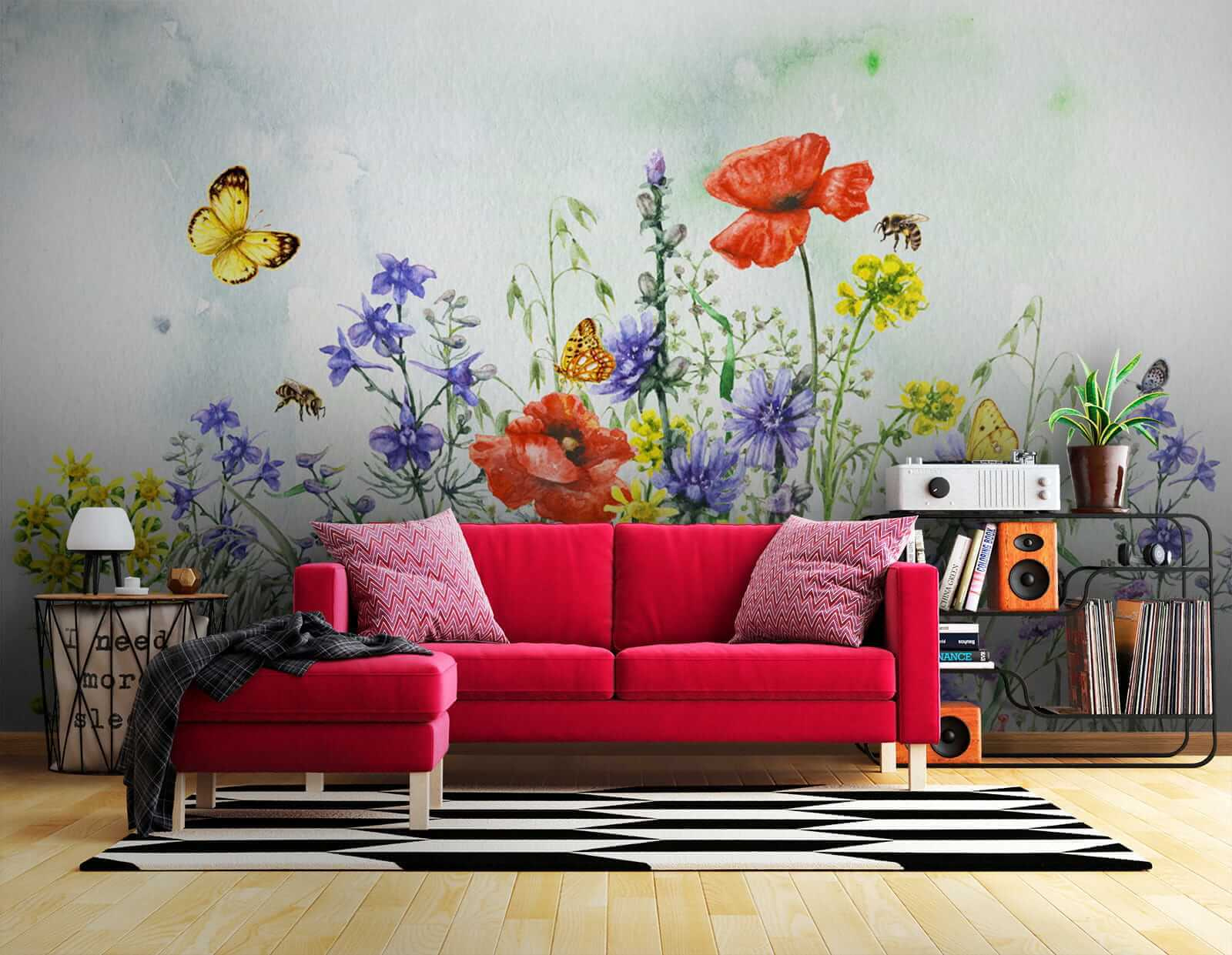 Představte si, že váš pokoj přímo na stěně hýří veselou atmosférou jarní zahrady! Přesně to přinášejí “Nástěnné malby Vibrující květy a třepotající se motýli”. Tato nástěnná malba bez námahy spojuje svěží krásu polních květin s půvabnými motýly tančícími ve vzduchu. Je to jako zachycení dokonalého slunečného dne!