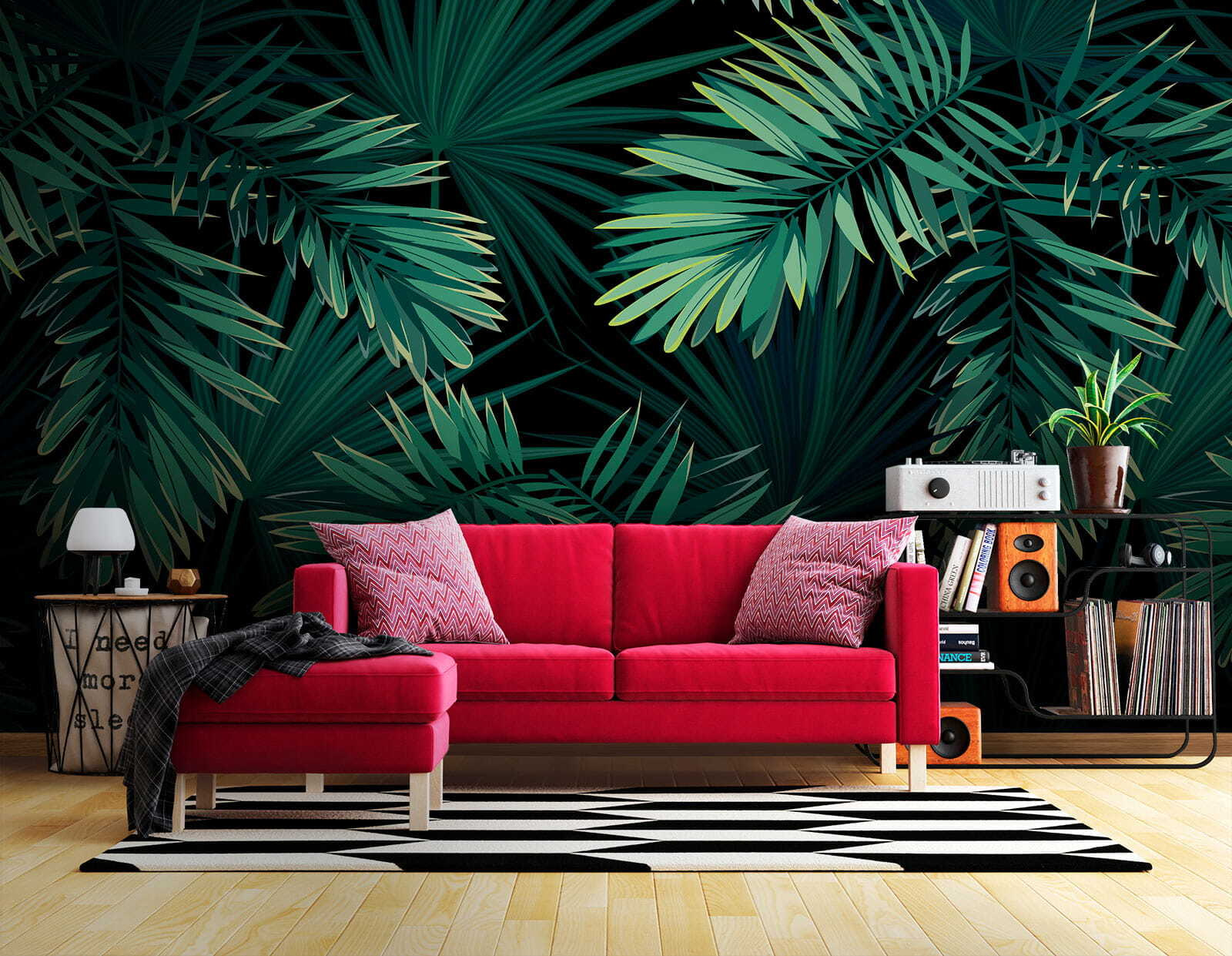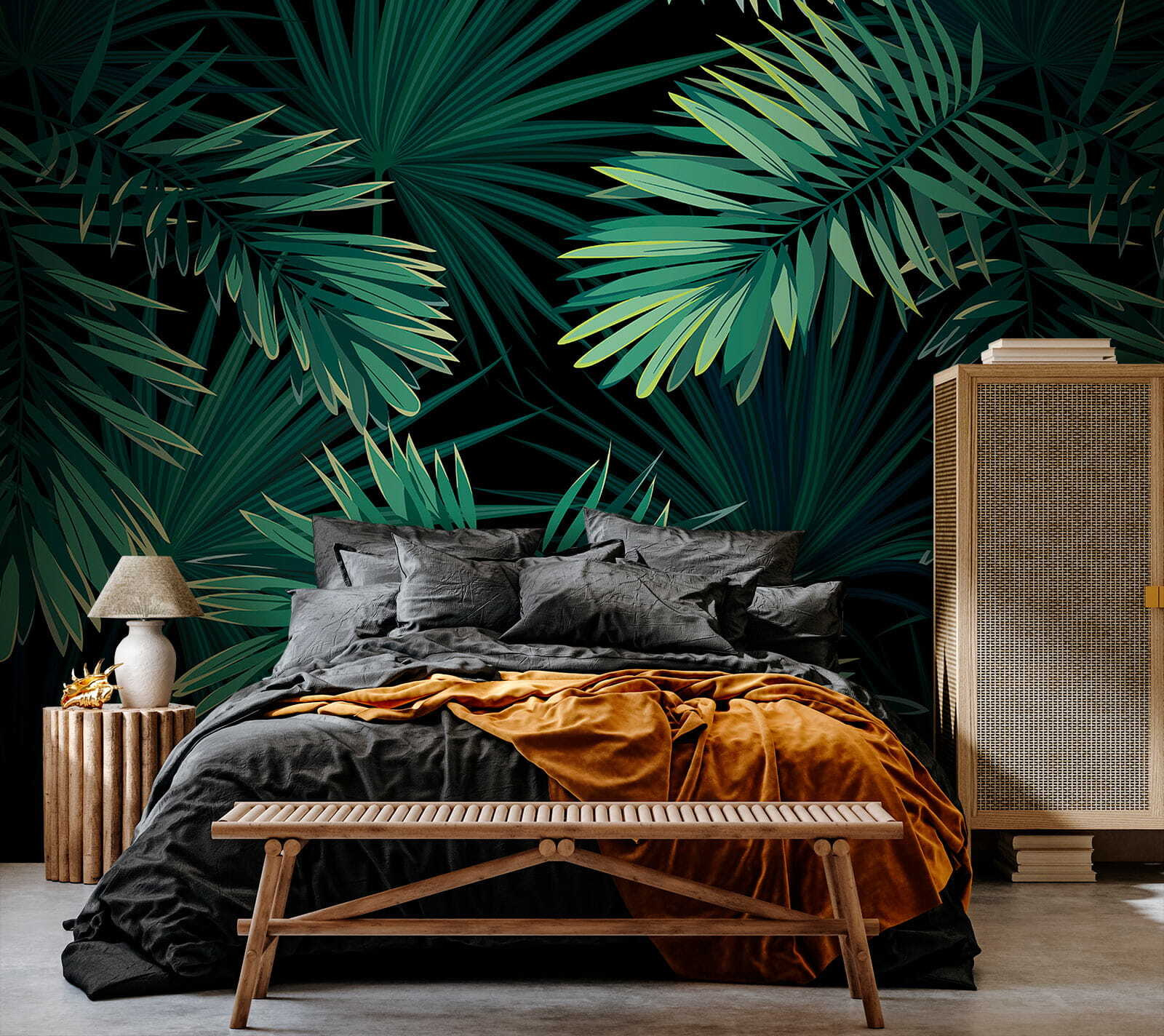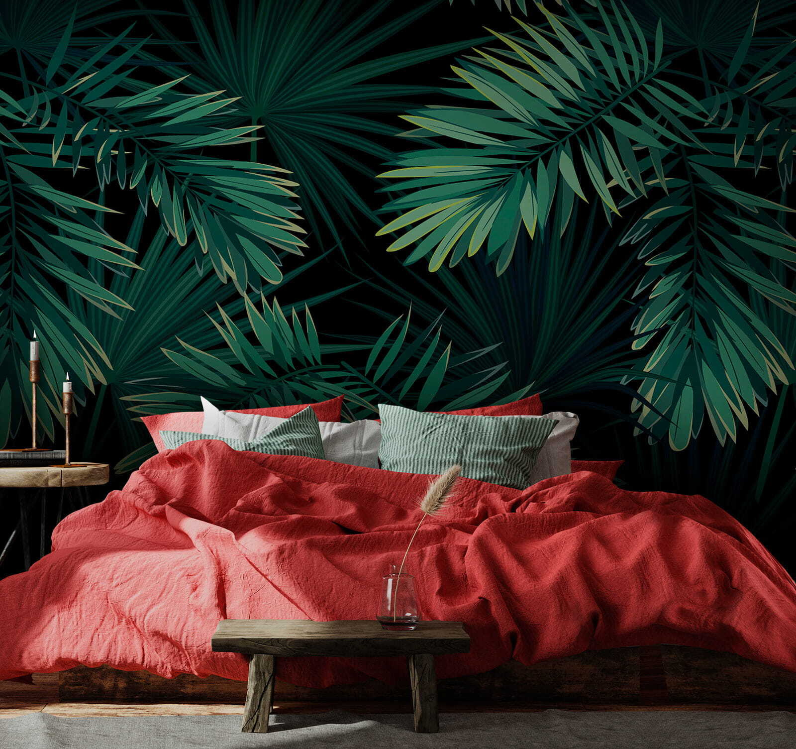 Proměňte každou místnost v malou džungli pomocí vzoru nástěnné malby Tropical Leaves. Tento zářivý vzor na tmavě černém pozadí nechává vyniknout svěží zeleni a vytváří živou atmosféru. Představte si, že popíjíte ranní kávu obklopeni těmito nádhernými listy – je to jako tropická dovolená, aniž byste museli opustit domov. Tato nástěnná malba je ideální pro prostory, které touží po energii a osobitosti, a zve do interiéru dotek přírody. Perfektně se hodí k vytvoření útulných čtecích koutků nebo energizujících pracovních prostor a jistě vzbudí radost. Kdo by nechtěl přijmout svého vnitřního objevitele?
