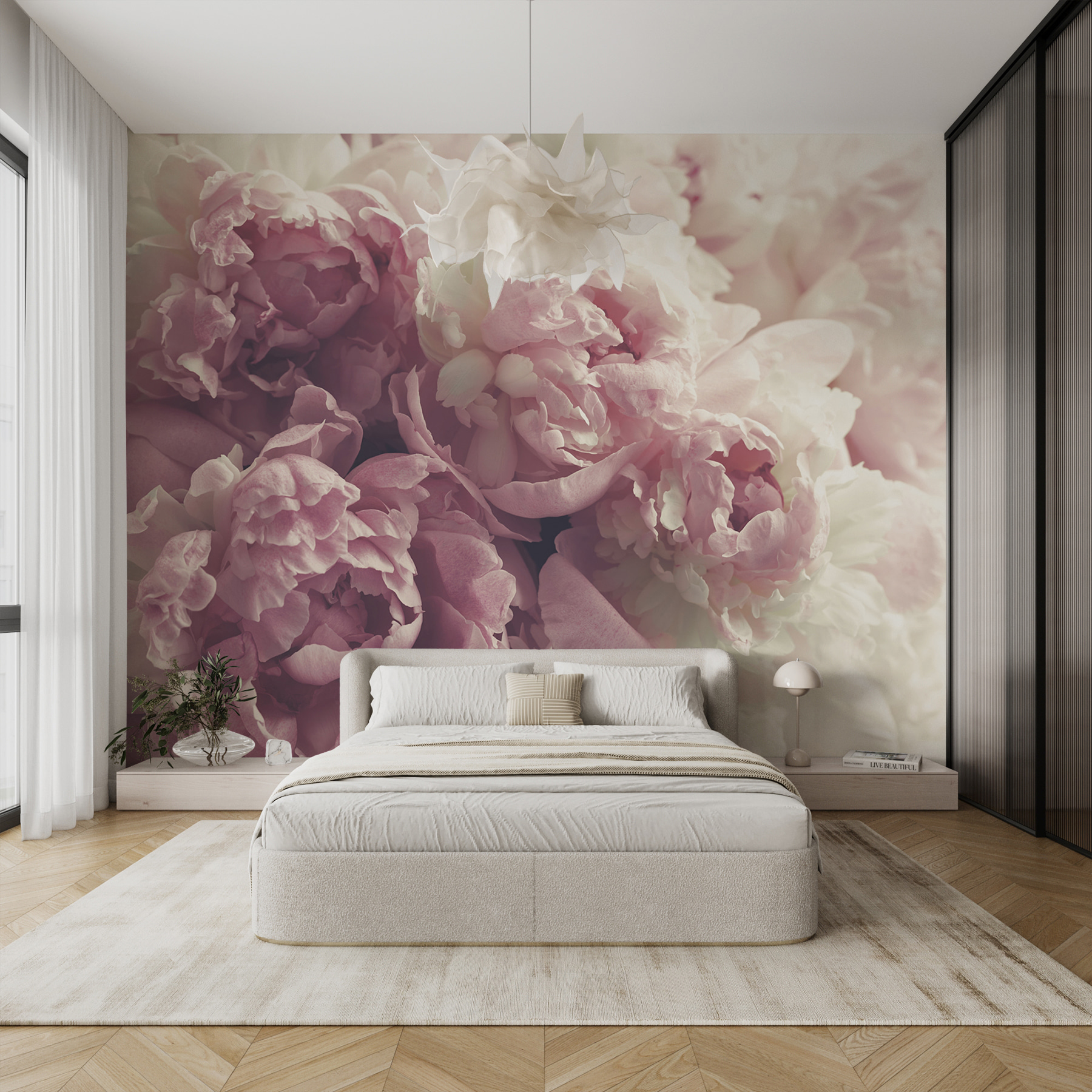 S touto fototapetou s krásným svazkem růžových a bílých květů proměníte každou místnost ve snovou zahradu. Představte si, že se každý den probouzíte s těmito jemnými květy, které vytvářejí klidné pozadí pro vaše ranní kávové rituály nebo noční rozhovory. Je to jako mít v interiéru kousek přírody bez pylu – žádné kýchání! Každý květ jako by šeptal klidnou výzvu k odpočinku a užívání si prostých radostí života. Tato nástěnná malba je ideální pro ozvláštnění obývacího pokoje nebo útulného zákoutí a přináší teplo a kouzlo jako objetí starého přítele. Jen si pomyslete, že by mohla proměnit i tu nejnudnější stěnu ve veselý začátek konverzace.