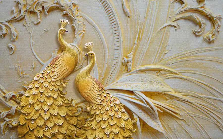 Proměňte svůj prostor díky půvabu elegantních pávů ve složitém reliéfu. Tato nástěnná malba není jen dekorací na zeď, ale také podnětem ke konverzaci. Představte si, že vejdete do místnosti a okamžitě se cítíte přeneseni do klidné zahrady. Tito opeření krasavci jako by tančili a vnesou na vaše stěny teplo a osobitost. Jemné odstíny dodávají nádech klidu, takže se skvěle hodí do útulného obývacího pokoje nebo klidné ložnice. Každý pohled na nástěnnou malbu může inspirovat ke snění o exotických cestách nebo líném odpoledni při popíjení čaje. Je to jako mít umělecké dílo, které vdechne život vaší každodenní rutině. Kdo by se nechtěl probouzet s takovým nádherným výjevem?