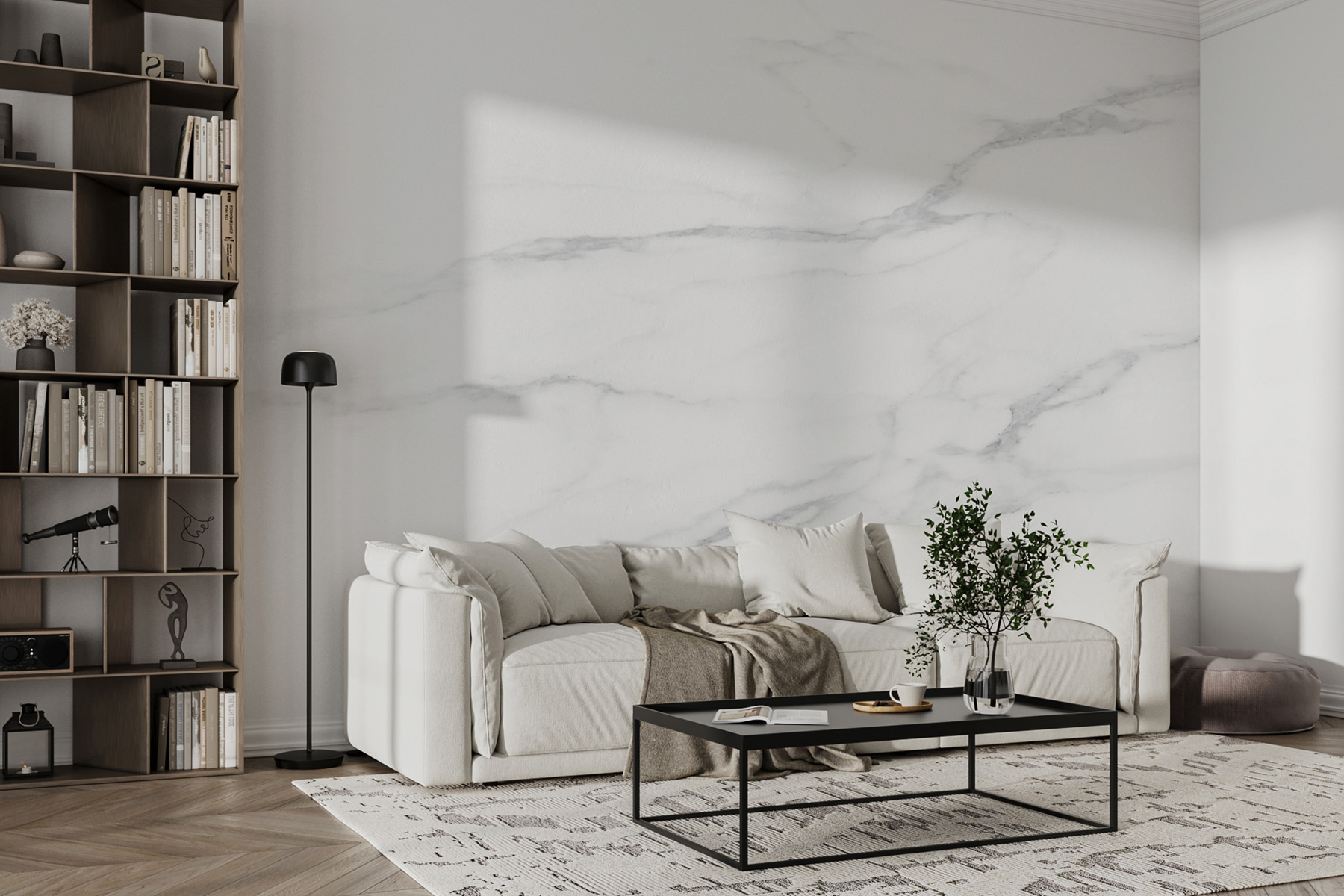 Proměňte jakoukoli obyčejnou stěnu v úžasné mistrovské dílo pomocí této nástěnné malby s bílou mramorovou strukturou a elegantními žilkami. Představte si, že vejdete do místnosti a okamžitě pocítíte dotek sofistikovanosti, jako byste vstoupili do elegantní galerie. Tato nástěnná malba nezůstává jen tak ležet, ale rozehrává prostor a vytváří klidnou atmosféru, která je ideální pro odpočinek po dlouhém dni. Navíc se tak snadno aplikuje. Stačí ji sloupnout a nalepit, a najednou si vaše stěny povídají s elegancí. Přátelé se vás určitě zeptají, kde jste tuhle krásu našli, a vy se budete jen usmívat a uchovávat si své tajemství. Ideální pro útulná zákoutí nebo výrazné stěny – nechte se unášet fantazií!