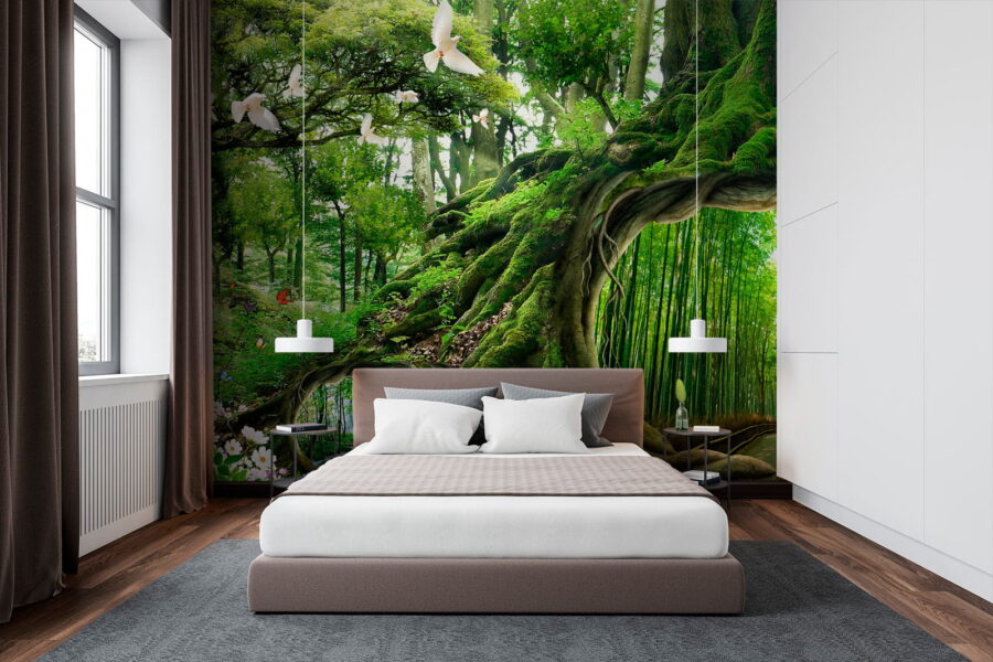 Proměňte svůj prostor v útulné lesní útočiště s tapetou „Strom s dírou uprostřed“. Představte si, že vstoupíte do svého pokoje a máte pocit, jako byste právě vkročili do kouzelného lesa. Tato tapeta zachycuje podstatu přírody s živými zelenými barvami a fantaskními malými detaily, jako jsou motýli a něžní holubice. Strom s lákavou dutinou klame mysl – je jako brána do jiného okouzlujícího světa! Ideální pro snílky nebo kohokoli, kdo potřebuje trochu přírodní terapie. Berte to jako každodenní připomínku, abyste dýchali a odpočívali, vnášející venkovní prostředí dovnitř, zatímco si stále užíváte pohodlí domova. Je to tapeta, která šeptá příběhy o dobrodružství a klidu, díky čemuž je každý pohled malým únikem. Jak by tomu někdo mohl odolat?
