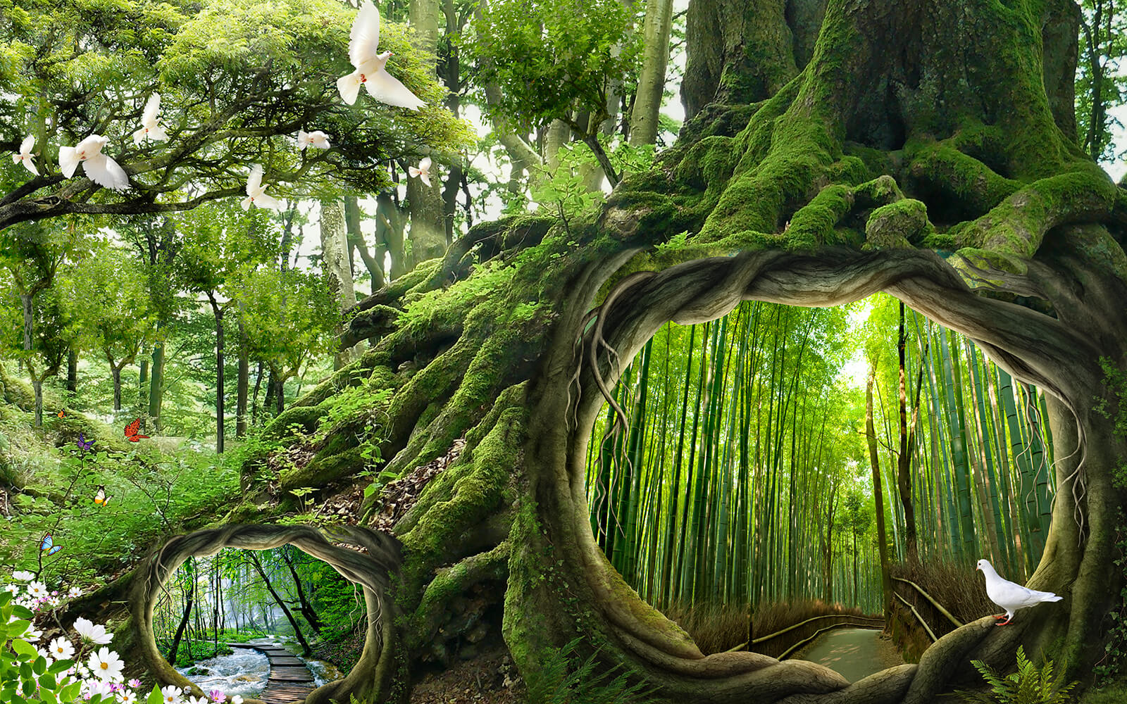 Proměňte svůj prostor v útulné lesní útočiště s tapetou „Strom s dírou uprostřed“. Představte si, že vstoupíte do svého pokoje a máte pocit, jako byste právě vkročili do kouzelného lesa. Tato tapeta zachycuje podstatu přírody s živými zelenými barvami a fantaskními malými detaily, jako jsou motýli a něžní holubice. Strom s lákavou dutinou klame mysl – je jako brána do jiného okouzlujícího světa! Ideální pro snílky nebo kohokoli, kdo potřebuje trochu přírodní terapie. Berte to jako každodenní připomínku, abyste dýchali a odpočívali, vnášející venkovní prostředí dovnitř, zatímco si stále užíváte pohodlí domova. Je to tapeta, která šeptá příběhy o dobrodružství a klidu, díky čemuž je každý pohled malým únikem. Jak by tomu někdo mohl odolat?