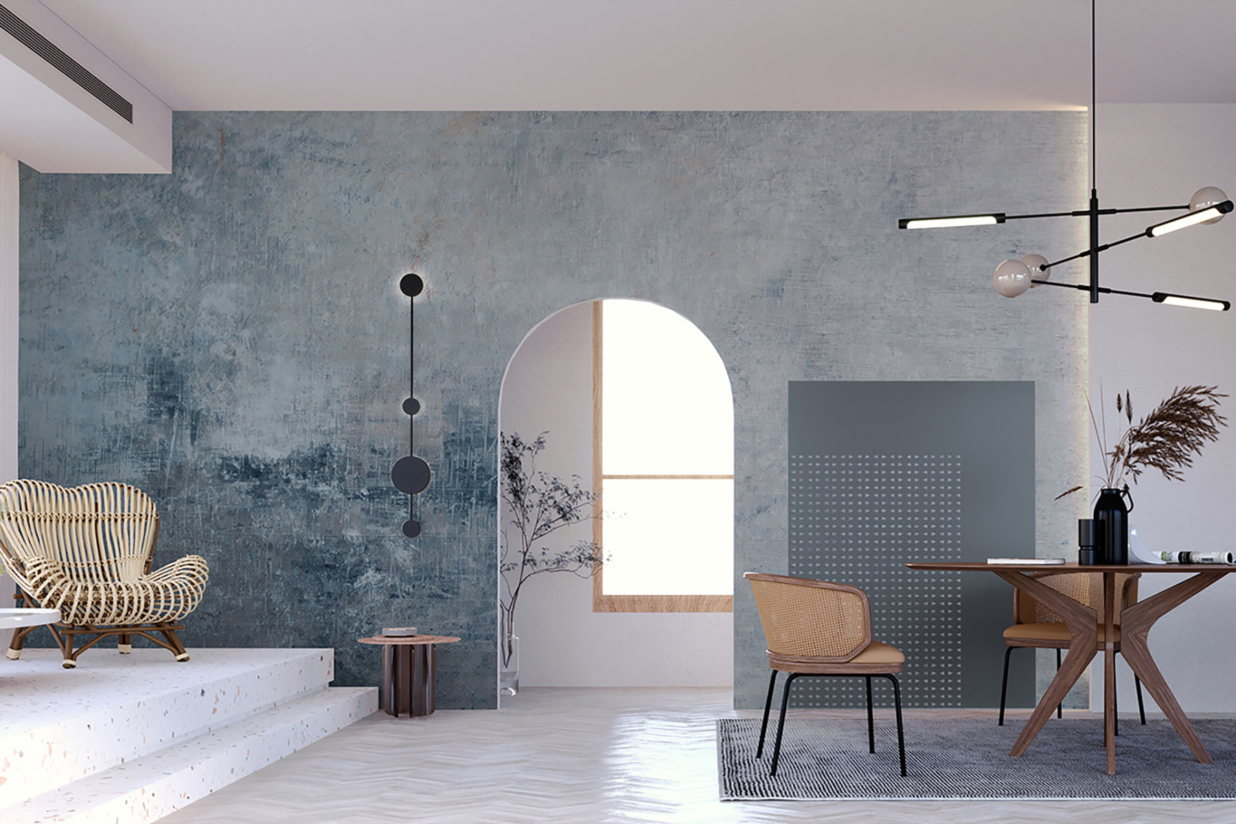 Proměňte každou místnost pomocí této chladné modré nástěnné malby, která působí elegantně a pohodově. Představte si, že vejdete do prostoru, který připomíná klidné ráno u moře – jemné odstíny modré barvy přecházejí jeden v druhý a navozují pohodový, bezstarostný pocit. Je ideální pro proměnu nudné stěny v ohromující ústřední bod, nebo třeba jen jako pozadí pro všechny ty fotografie, které plánujete pořídit toto léto. Díky svému jedinečnému, téměř zvětralému vzhledu přináší teplo a sofistikovanost, aniž by řekla jediné slovo. Takže si vezměte šálek kávy, opřete se a nechte stěny mluvit! Kdo by řekl, že domácí dekorace může být tak snadná a příjemná?