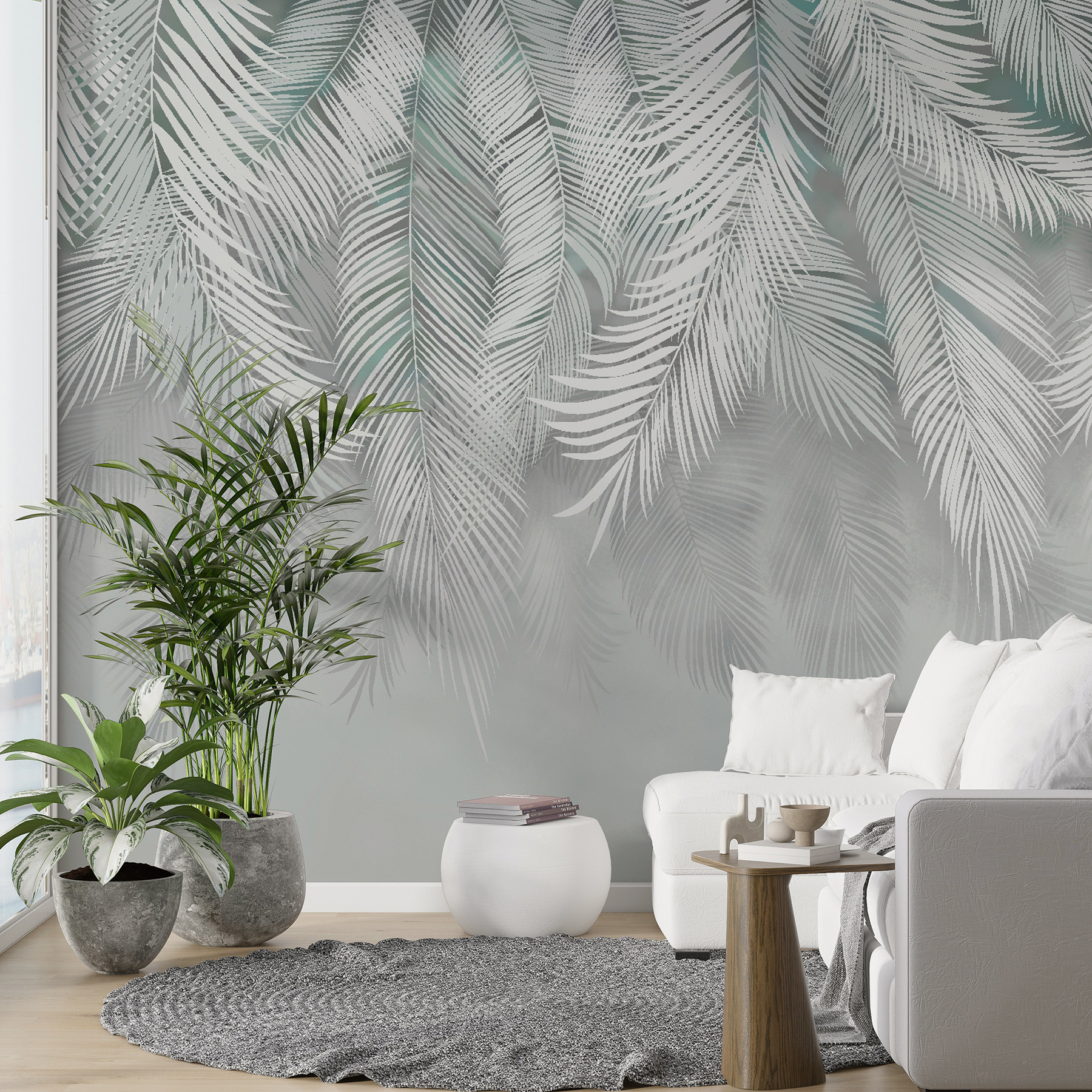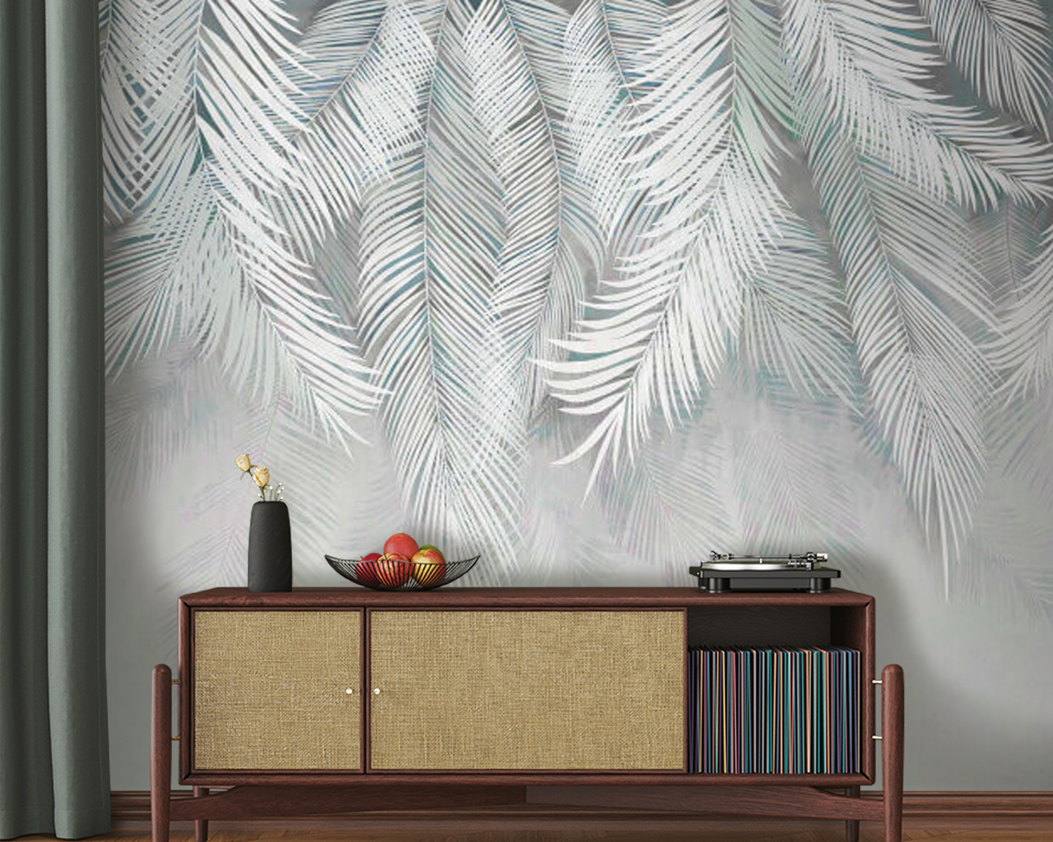 Proměna místnosti může působit jako kouzlo, zvláště když ji doplníte o tuto elegantní nástěnnou malbu v podobě bílých palmových listů. Představte si, že popíjíte šálek kávy, uvelebeni ve svém oblíbeném křesle, zatímco tyto měkké, složité listy kolem vás vytvářejí klidnou atmosféru. Je to jako přenést kousek tropů do interiéru – bez úpalu. Díky jemným odstínům této nástěnné malby je velmi snadné ji sladit s jakýmkoli interiérem, ať už je boho-šik, nebo minimalistický. Představte si, že hostíte přátele a oni nemohou neobdivovat stěnu, která působí jako únik. Díky své uklidňující energii nebude jen zdobit váš prostor, ale i pozvedne vaši náladu. Kdo by řekl, že nástěnné umění může působit jako mini dovolená?