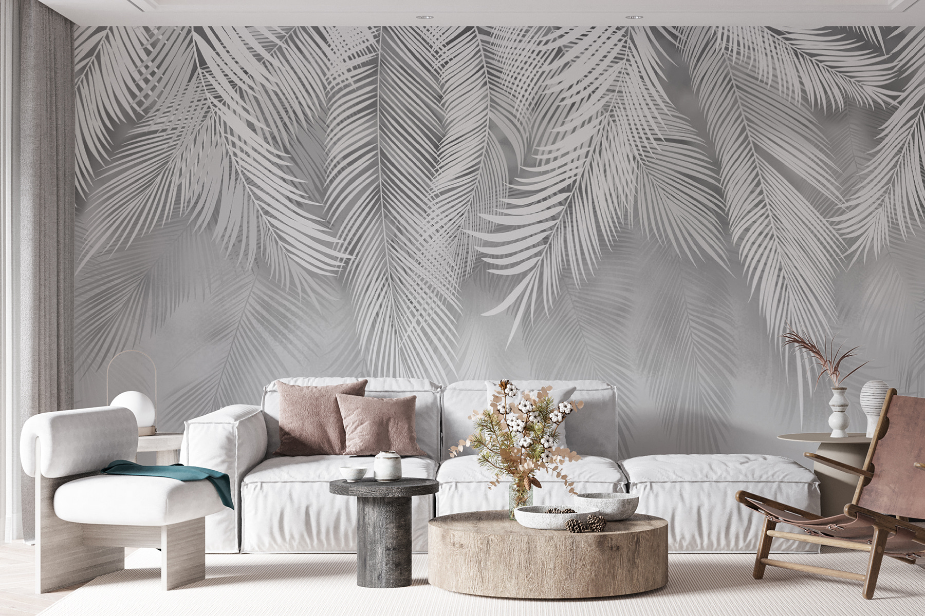 3 recenze Fototapeta Elegantní design stříbrných palmových listů