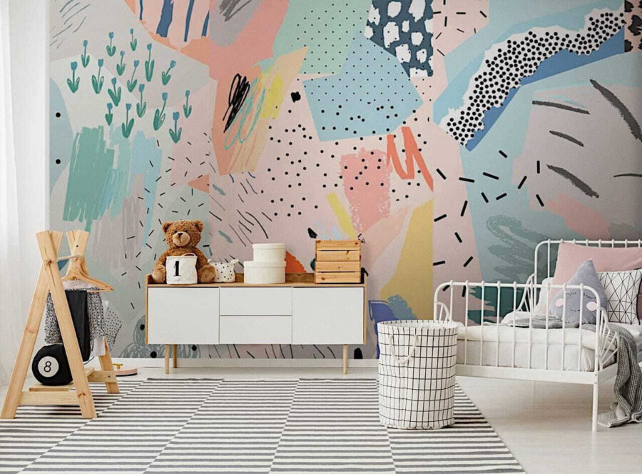 Máte dětský pokoj, který potřebuje kouzlo? Podívejte se na tuto barevnou abstraktní fototapetu – je jako hravá patchworková deka na stěnách. Najdete zde střípky jemných pastelových barev smíšených s odvážnějšími kousky; malé barevné výboje a nepředvídatelné tvary jsou prostě snové. Představte si, jak vaše ratolest rozvíjí svou fantazii při pohledu na všechny tyto zábavné vzory! Je to něco jako pohádková kniha, která explodovala na zdi – tím nejlepším možným způsobem.