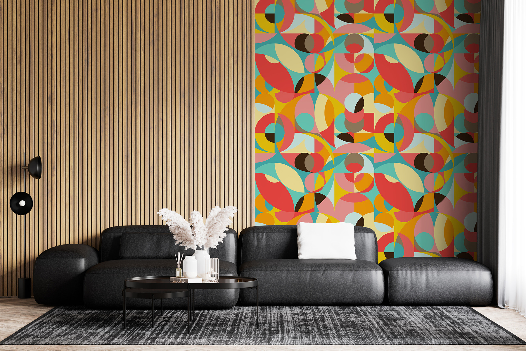Rozjasněte každou místnost touto rozmarnou nástěnnou malbou s barevnými vzory kruhů a teček, které tančí po povrchu. Představte si, že vstoupíte do prostoru, který okamžitě ožije jako hravá umělecká galerie, ale bez snobských nálad. Výrazné barvy a jedinečné tvary upoutají pozornost a vyvolají konverzaci. Hodí se do útulného obývacího pokoje, kreativního pracovního prostoru nebo třeba do dětského koutku, kde se fantazie rozproudí na plné obrátky. Představte si to: deštivé odpoledne strávené uvnitř, kdy hřejivá záře této nástěnné malby promění pochmurnou atmosféru v útulné a veselé útočiště. Kdo potřebuje útěk, když doma může být takhle veselo?