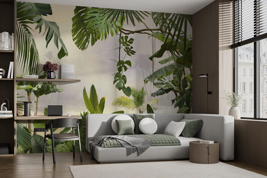 Podívejte se na tuto živou nástěnnou malbu “Bujný ráj džungle se zelenými listy”! Je to jako vstoupit do tropického ráje, aniž byste museli opustit svůj domov. Představte si, že se každý den probouzíte do moře zelených listů a exotických rostlin – ideální pro atmosféru džungle, kterou hledáte. Tato nástěnná malba nejenže dodá šmrnc barvám, ale také vnese život a svěžest do každé místnosti. A hádejte co? Dá se sloupnout a nalepit, takže se nemusíte trápit s lepidlem ani nepořádnou instalací. Ať už potřebujete uklidňující koutek v obývacím pokoji nebo živý nádech v kanceláři, tento kousek bez námahy promění prostory. Pociťte tropický vánek s únikem z džungle v interiéru – letenka není potřeba!