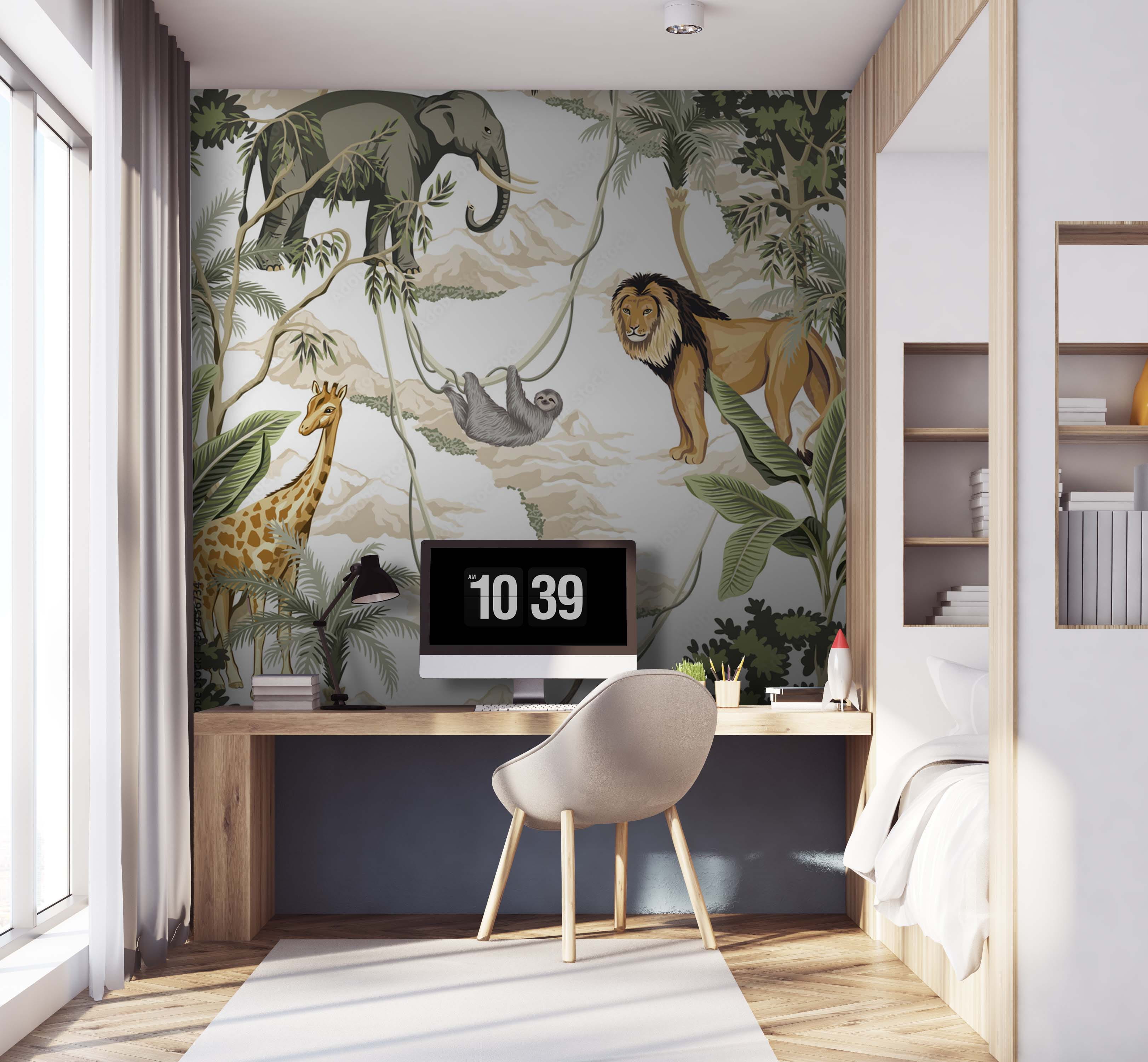 Transform a room into a jungle adventure with this vibrant wall mural. Picture yourself sipping coffee while a lion casually watches over everything, or a sloth giving you the slowest high-five ever. With giraffes peering in and elephants adding a touch of majesty, it’s hard not to feel a spark of wild inspiration! Perfect for those cozy corners or that feature wall that could use a little life. Imagine the stories it’ll tell—your guests will feel like explorers every time they step into the space. Bring the outdoors in, minus the mosquitoes!