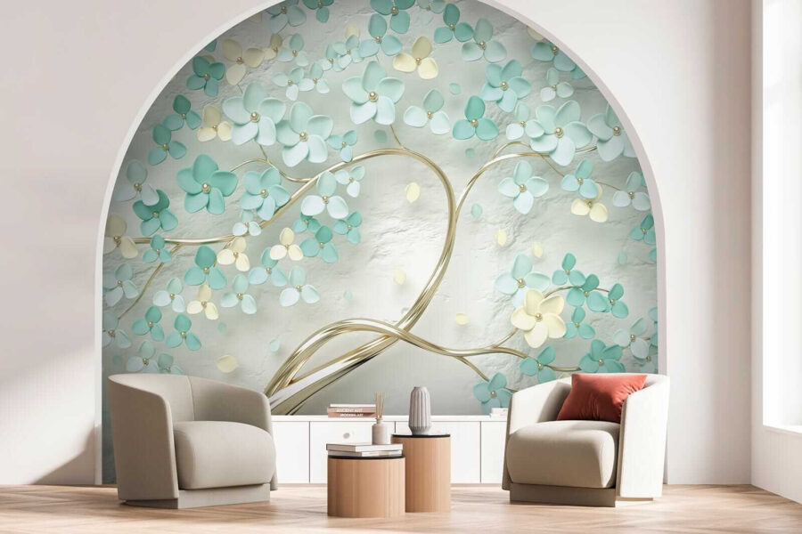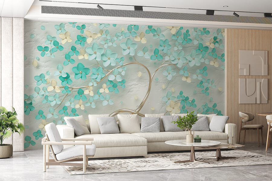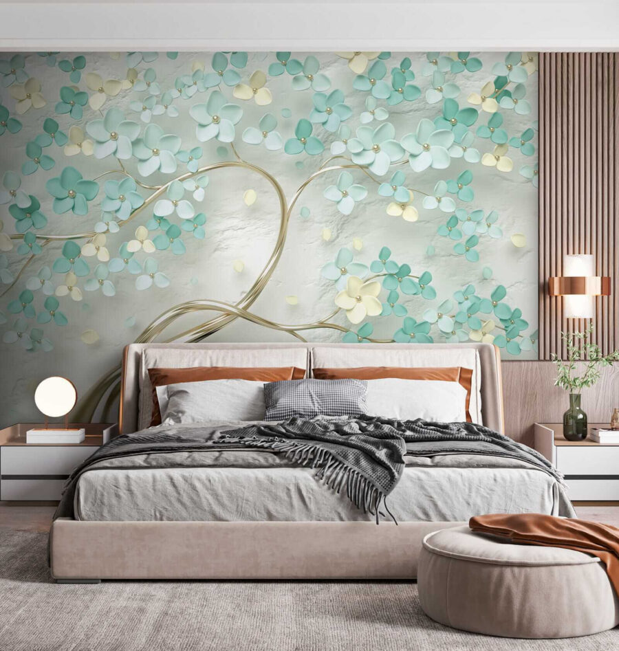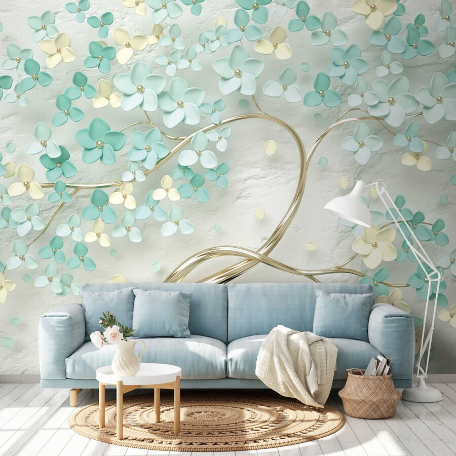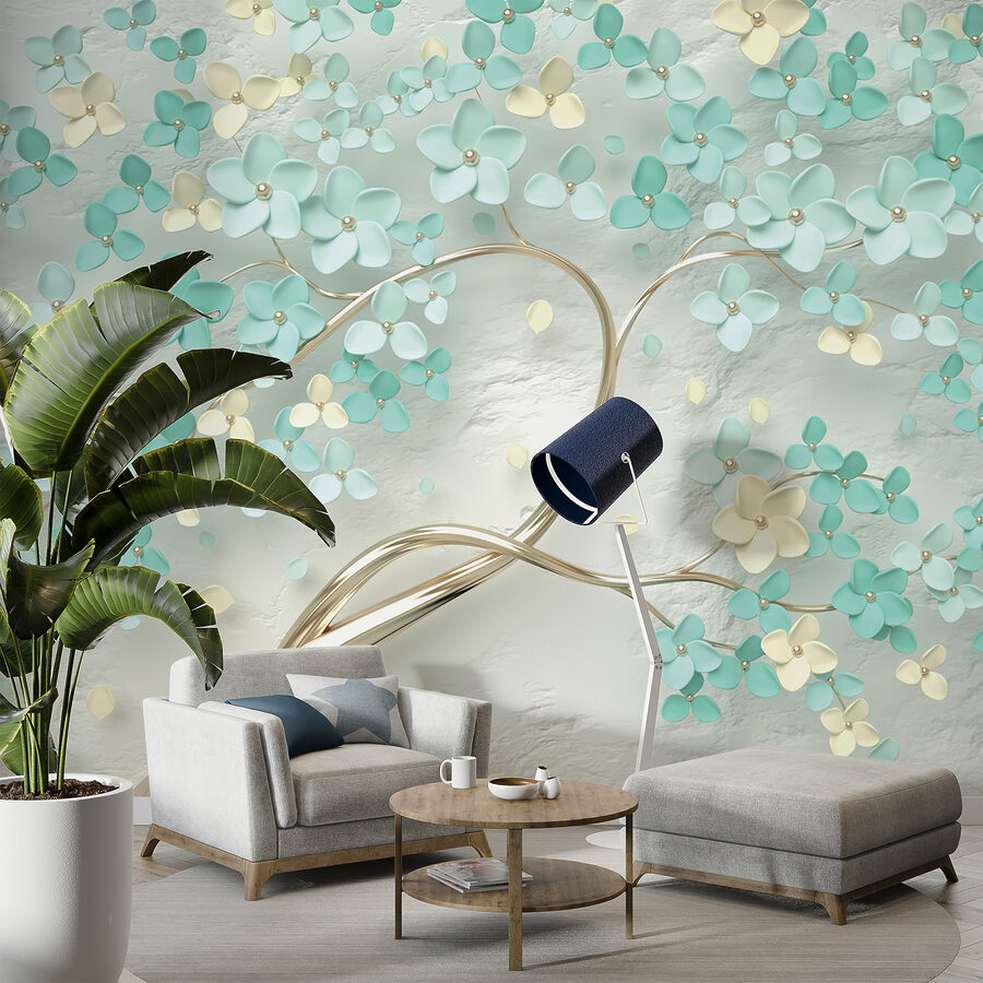 Proměňte jakoukoli místnost pomocí této úžasné nástěnné malby, kde jemné květy tančí na měkkém pozadí. Představte si, že vstoupíte do sluncem prozářené zahrady, kde vás jemně obejmou uklidňující tyrkysové a krémové barvy. Je to, jako byste si do interiéru přinesli závan jara – není třeba zalévat! Tato nástěnná malba nejen dodává šarm, ale také vytváří klidnou atmosféru, která našeptává relaxaci. Představte si, že před ní popíjíte ranní kávu a cítíte, jak vás zaplavuje klid, nebo si vytvoříte útulný prostor pro noční čtení. Tak proč nenechat své stěny rozkvést?