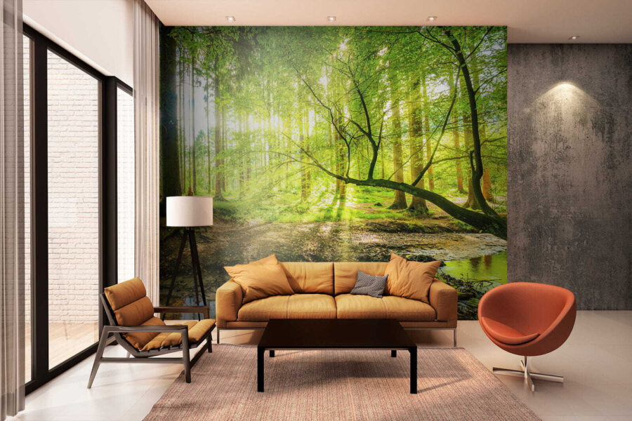 S nástěnnou malbou “Sunlit Forest with Shimmering Stream” se ocitnete v pohádkovém světě. Představte si, že se váš prostor promění v klidné lesní útočiště, kde světlo proniká skrz vysoké stromy a vzduch naplňuje šepot přírody. Představte si tuto nástěnnou malbu na stěně, která přinese kousek venkovní přírody přímo do vašeho obývacího pokoje. Je to jako mít kousek kouzla kempování, bez otravného hmyzu. Každý pohled na zářivou zeleň a jemný tok potoka může inspirovat ke snění. Pohodlná deka a dobrá kniha? Rozhodně vítězná kombinace!
