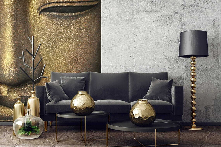 Proměňte jakýkoli prostor díky uklidňující atmosféře této nástěnné malby s klidnou tváří sochy Buddhy. Představte si, že vejdete do svého pokoje a přivítá vás výraz, který vám šeptá do ucha klid. Je to jako mít na zdi osobního mistra zenu, který vám vždy připomene, abyste se zhluboka nadechli.