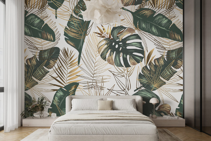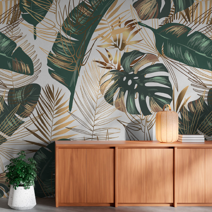 Proměňte každou místnost v tropický ráj pomocí těchto zářivých nástěnných maleb se svěžími listy a hravými abstraktními vzory. Představte si, že vstoupíte do obývacího pokoje a budete mít pocit, že jste právě přistáli na bezstarostném ostrově – ta zelená a zlatá prostě vybízí k relaxaci. Ať už se jedná o útulný koutek na čtení, nebo o živý prostor pro setkávání přátel, tato nástěnná malba mu dodá dokonalý nádech osobitosti. Je jako jemná připomínka, že je třeba zpomalit a nasávat krásu kolem sebe. Kdo by nechtěl popíjet drink a předstírat, že je na dovolené přímo u sebe doma?