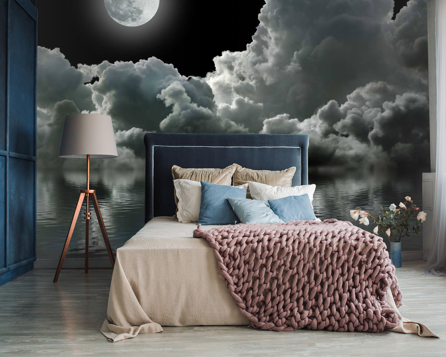 Proměňte jakoukoli místnost v pohádkové útočiště s touto úchvatnou tapetou, na které je vyobrazen měsíc nad vodou, zahalený do nadýchaných mraků. Je to jako přenést kousek noční oblohy dovnitř! Představte si, jak ležíte na gauči, popíjíte čaj a kocháte se tímto klidným výhledem. Jemné odrazy ve vodě přitahují pohled a vytvářejí klidnou atmosféru, která je ideální pro odpočinek po dlouhém dni. Kdo by nemiloval měsíční scenérii, která vás přivádí do poetické nálady? Hosté se možná dokonce zeptají, zda se náhodou neocitli v útulné umělecké galerii – není to úžasné? Tato tapeta není jen dekorací, je to scéna, která vybízí k snění, šeptá příběhy a dodává vašemu prostoru špetku kouzla.