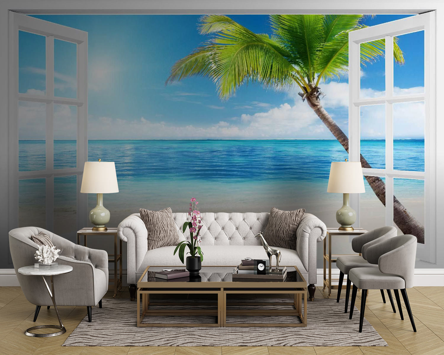 S touto nástěnnou malbou “Dveře otevřené na pláž” proměníte každou místnost v prosluněnou dovolenou. Představte si, že vejdete do svého prostoru a okamžitě pocítíte tropický vánek – vaše starosti odplují jako příliv. Zářivé vlny a pohupující se palma vytvoří klidné útočiště přímo u vás doma. Je ideální pro útulný čtenářský koutek nebo živý rodinný pokoj, kde celoročně vybízí ke snění a plážové atmosféře. Jen si představte líné odpoledne, kdy popíjíte chladivý nápoj a sluneční paprsky hřejí vaši duši. Tato nástěnná malba není jen dekorací, je to pozvánka k odpočinku a útěku, bez nutnosti letenky.