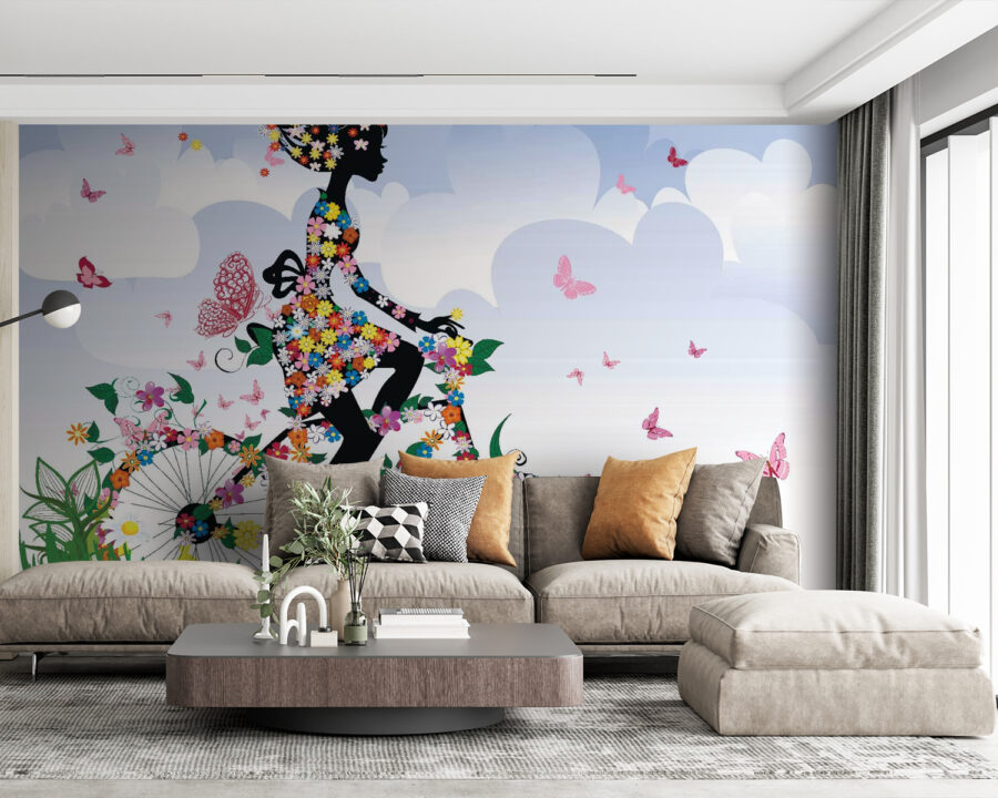 Představujeme vám originální doplněk do každého prostoru – nástěnnou malbu „Žena na kole s květinami“. Tato malba není jen dekorací, je jako závan jara přímo ve vašem domě. Představte si živou siluetu jedoucí na kole zahradou plnou květin a poletujících motýlů. Je ideální pro nudnou zeď, která volá po troše života, nebo pro kout, který potřebuje trochu kouzla. Představte si příjemný večer s přáteli, smích a povídání, zatímco tato tapeta dodává místnosti nádech radosti. Není to jen pohled, vyvolává úsměvy a sny o slunečných dnech. Příjemná připomínka, že život je cesta, kterou si nejlépe užijete v plném rozkvětu!