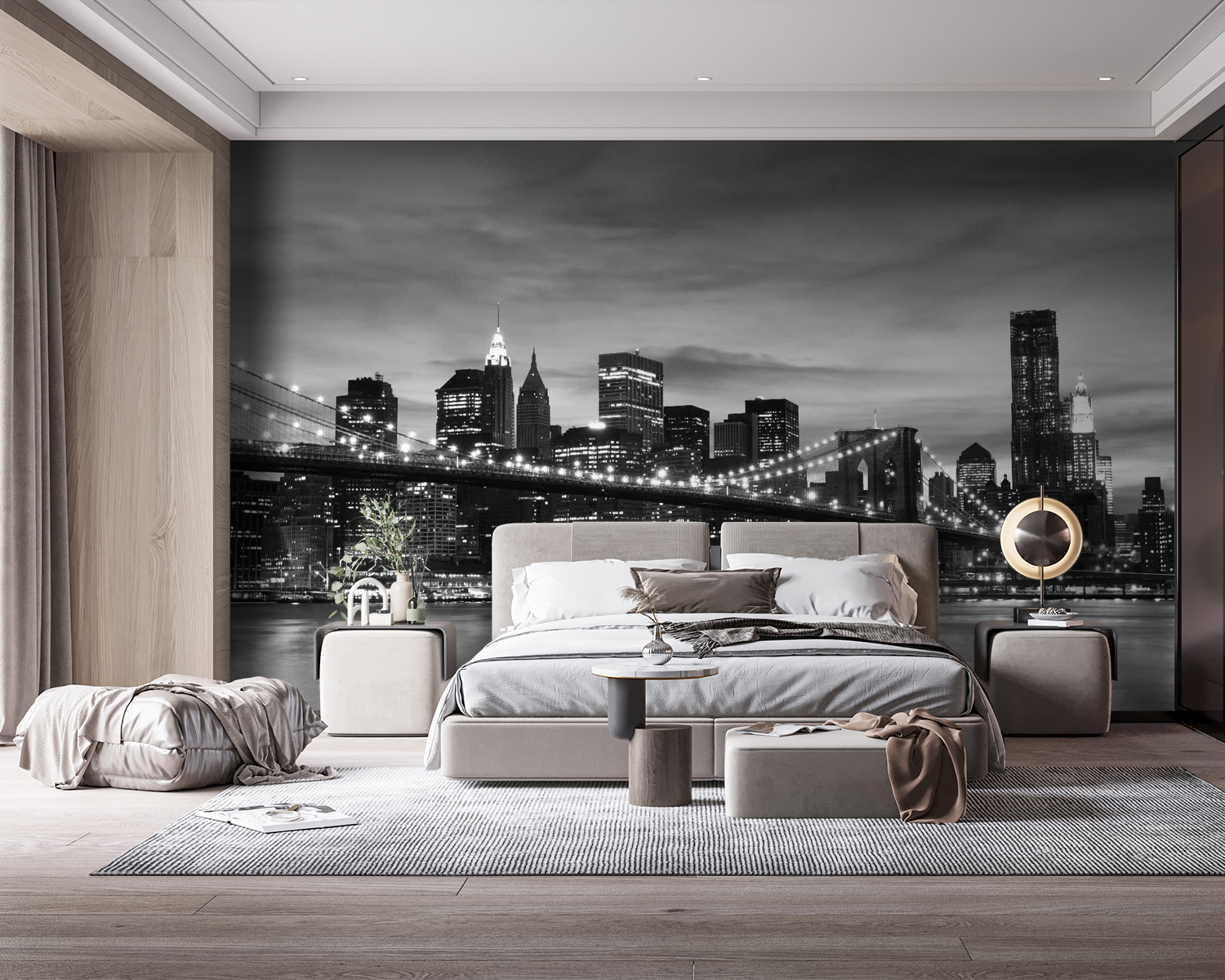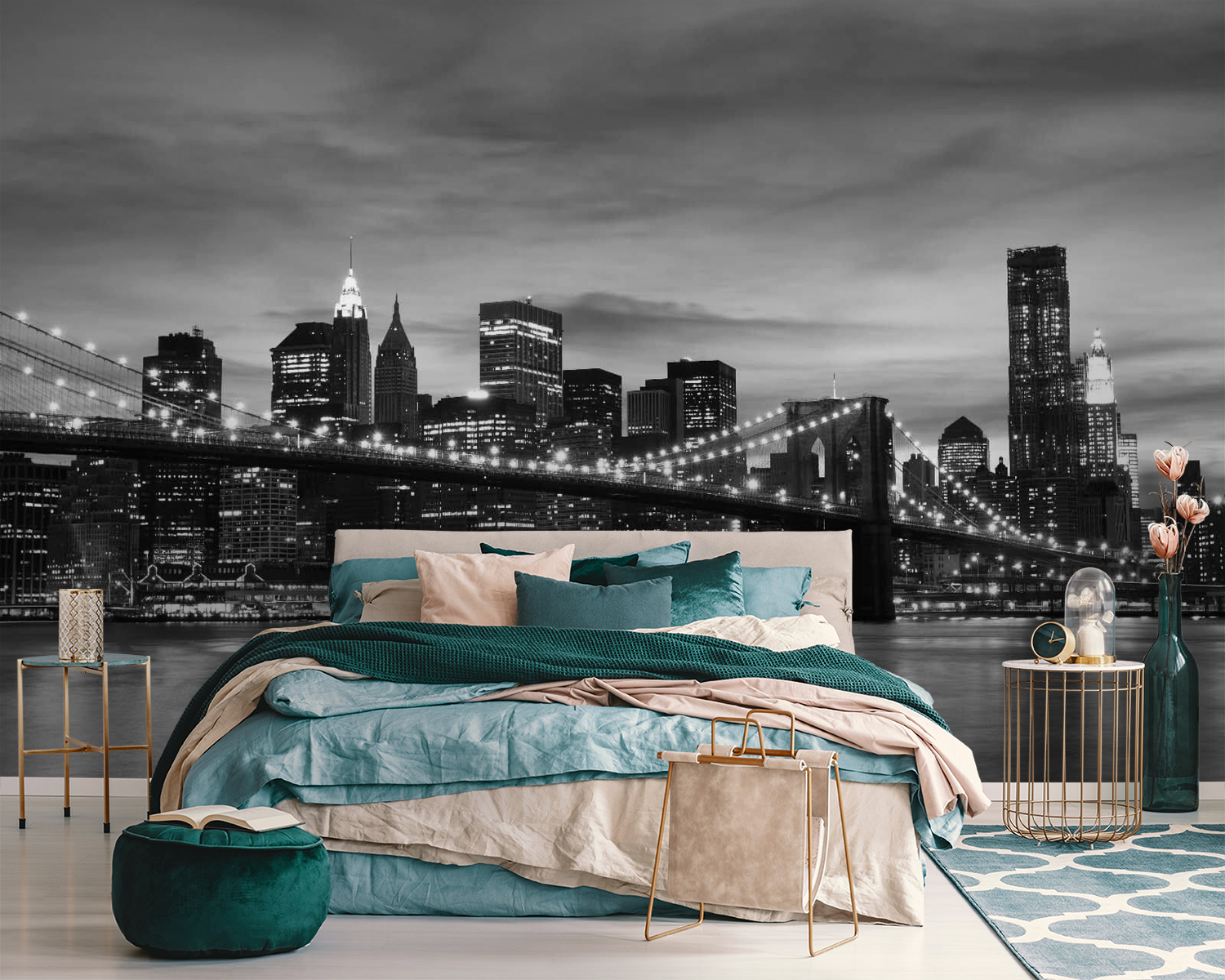 “Vodní plocha se světly v pozadí” změní vaše stěny z prázdného plátna na zázračnou krajinu města. Představte si to: sedíte v obývacím pokoji a najednou se před vámi objeví fascinující nástěnná malba rušného panoramatu města, která je celá osvětlená a odráží se od vody. Je to jako mít okno do srdce města, ale bez hluku (a dopravy). Ideální pro dodání městského kouzla vašemu prostoru. Je to jako pohlednice, do které můžete vstoupit. Vaši hosté budou ohromeni, věřte mi. Tak elegantní, ale s dostatkem záře, aby působil útulně a příjemně. Ideální pro snílky i milovníky města – tato nástěnná malba promění každou místnost v úchvatný výhled.