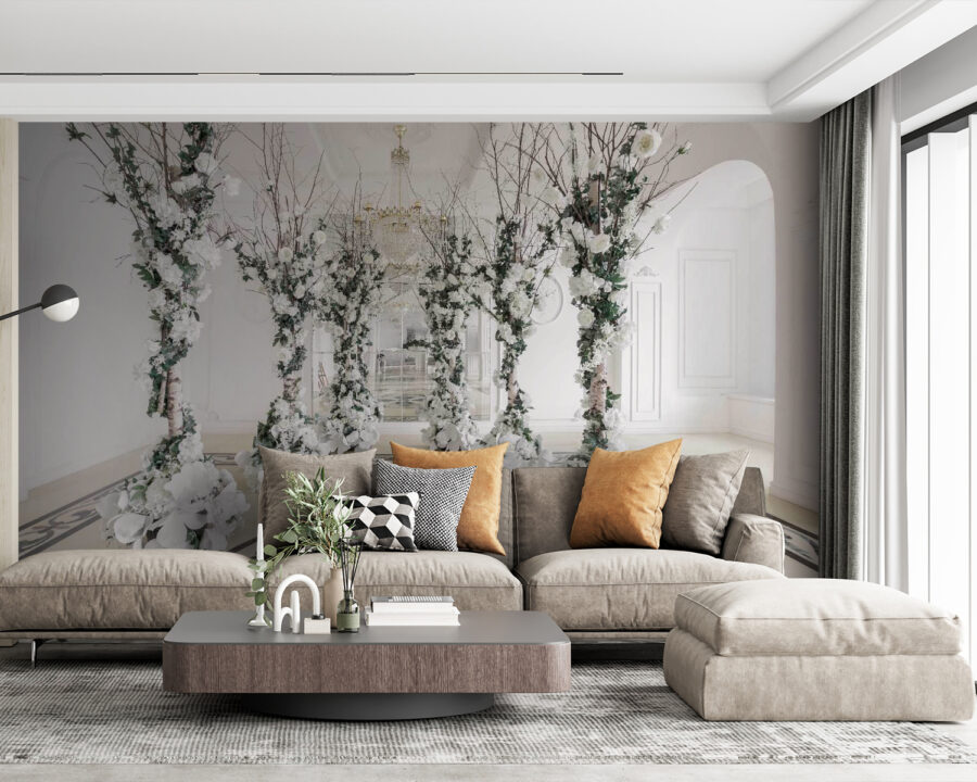 Vstupte do snové oázy s touto úchvatnou tapetou „Skupina bílých květin v místnosti“. Představte si, že vstoupíte do svého prostoru a máte pocit, jako byste se ocitli v klidné zahradě, přímo ve svém vlastním domě. Bílé květinové vzory vytvářejí čistou, svěží atmosféru, která rozjasní každou místnost a dodá jí nádech elegance. Je to jako závan čerstvého vzduchu bez pylu!