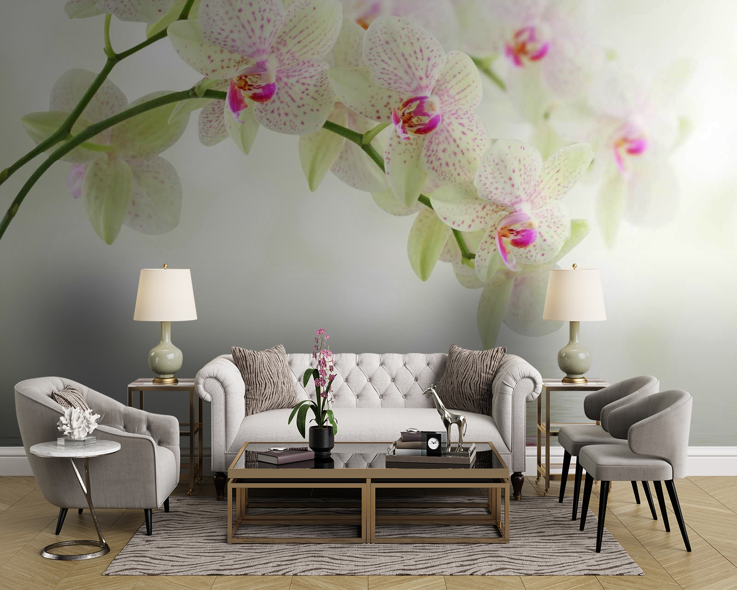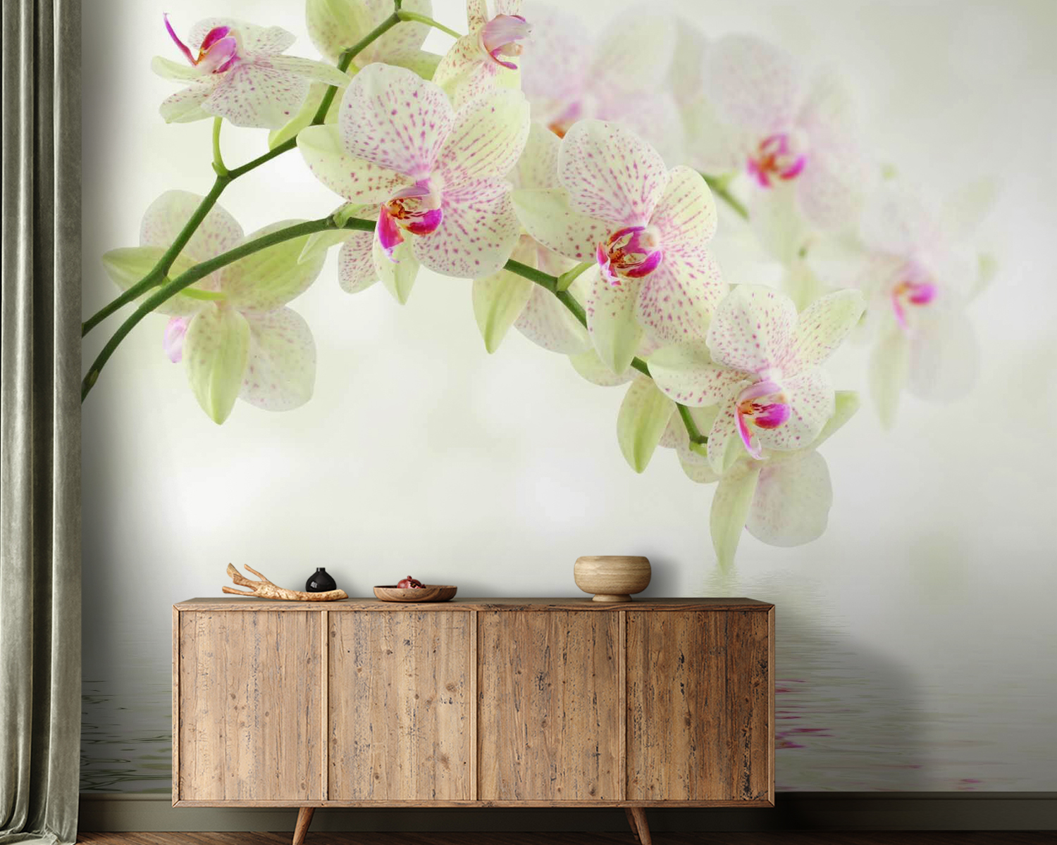 Proměňte jakoukoli nudnou stěnu v klidné útočiště díky této úžasné nástěnné malbě s orchidejemi odrážejícími se v klidné vodě. Představte si, jak se každý den probouzíte a vítají vás jemné odstíny a jemné vlnky, které evokují klidnou oázu přímo u vás doma. Je to jako mít kousek krásy přírody bez starostí se zaléváním rostlin nebo starostí o sluneční světlo. Přátelé se u vás budou zastavovat a divit se, jak jste dokázali vytvořit tak krásnou atmosféru – prozraďte jim tajemství a sledujte, jak omdlévají! Tato nástěnná malba, která se skvěle hodí do útulného obývacího pokoje nebo zasněné ložnice, přivolá do vašeho prostoru klidné vibrace. Jde o vytvoření klidného útočiště, kde každý pohled působí jako závan čerstvého vzduchu. Trocha květinového kouzla se hodí na dlouhou cestu, že?