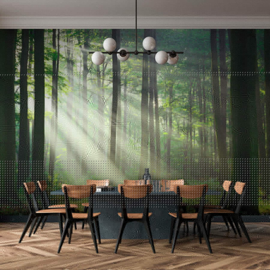 Přemýšleli jste někdy o procházce prosluněným lesem přímo ve vašem obývacím pokoji? Tato nástěnná malba “Sluneční paprsky proudící lesem” přinese do vašeho prostoru tento snový zážitek. Představte si, že tyto jemné sluneční paprsky pronikají skrz vysoké majestátní stromy – je to jako klidné útočiště v přírodě, aniž byste museli opustit svůj gauč. Svěží zeleň a teplé paprsky okamžitě dodají pocit klidu a pohody. Ideální pro milovníky přírody a všechny, kteří chtějí přenést kousek venkovní přírody dovnitř. Prakticky uslyšíte cvrlikání ptáků! Ideální pro vytvoření útulné a příjemné atmosféry u vás doma. Hosté budou trčet v úžasu. A možná, jen možná, se budete cítit o něco šťastnější pokaždé, když se na něj podíváte. Skvěle se hodí do každého prostoru, který potřebuje dotek přírodní krásy.