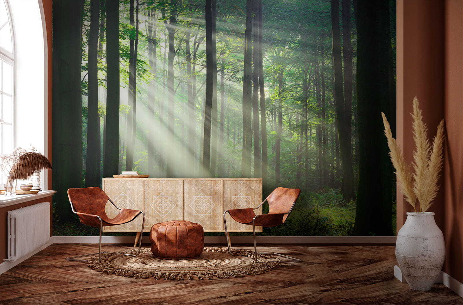 Přemýšleli jste někdy o procházce prosluněným lesem přímo ve vašem obývacím pokoji? Tato nástěnná malba “Sluneční paprsky proudící lesem” přinese do vašeho prostoru tento snový zážitek. Představte si, že tyto jemné sluneční paprsky pronikají skrz vysoké majestátní stromy – je to jako klidné útočiště v přírodě, aniž byste museli opustit svůj gauč. Svěží zeleň a teplé paprsky okamžitě dodají pocit klidu a pohody. Ideální pro milovníky přírody a všechny, kteří chtějí přenést kousek venkovní přírody dovnitř. Prakticky uslyšíte cvrlikání ptáků! Ideální pro vytvoření útulné a příjemné atmosféry u vás doma. Hosté budou trčet v úžasu. A možná, jen možná, se budete cítit o něco šťastnější pokaždé, když se na něj podíváte. Skvěle se hodí do každého prostoru, který potřebuje dotek přírodní krásy.