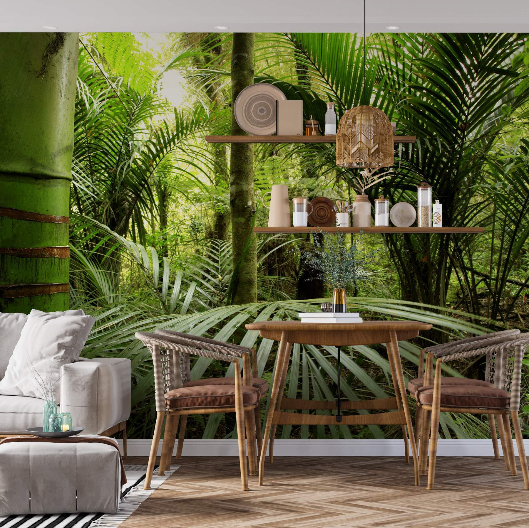 Snili jste někdy o útěku do svěžího zeleného ráje, aniž byste opustili svůj obývací pokoj? Tato fototapeta svěží zelené džungle s palmami vám to umožní. Je to jako vstoupit do tajné zahrady, aniž byste potřebovali pas. Představte si, že popíjíte ranní kávu a cítíte se jako na exotické dovolené. Zeleň je tak živá, že téměř uslyšíte šumění listí a cvrlikání ptáků. Ideální pro vytvoření klidného, přírodou inspirovaného útočiště v jakékoli místnosti. Dodejte svému prostoru atmosféru džungle – dalekohled není potřeba.