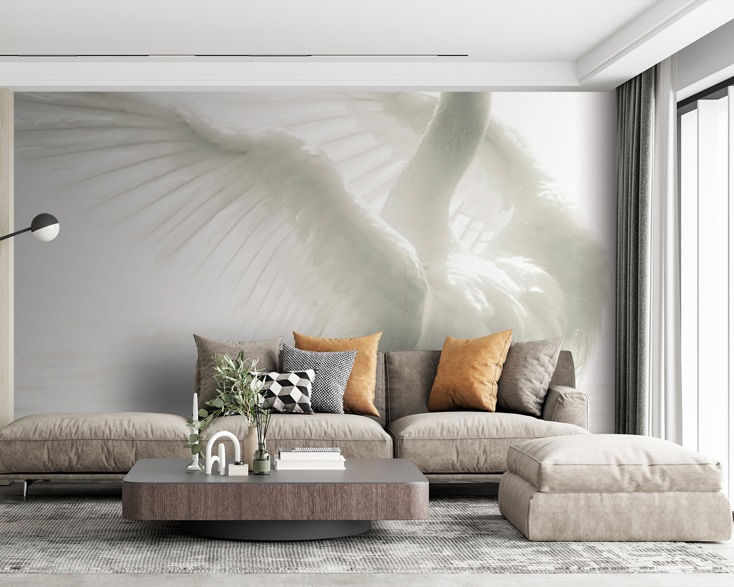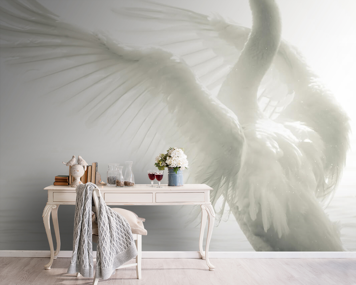 Proměňte svůj prostor pomocí této úžasné nástěnné malby bílé labutě, která roztahuje křídla v klidných vodách. Přináší klidnou a zároveň působivou atmosféru, ideální do obývacího pokoje nebo klidného zákoutí, kde popíjíte ranní kávu. Představte si, že se na ni podíváte a sami se budete cítit jako ladný pták, který se vznáší nad každodenním shonem. Jemný pohyb jeho křídel vybízí ke klidu a kouzlu. Je to jako mít kousek přírody přímo na zdi – žádné nepořádné peří, které byste museli uklízet! Tato nástěnná malba je podnětem ke konverzaci, která jistě zaujme a vyvolá několik úsměvů. Ideální pro ty, kteří ocení umění, jež našeptává krásu a eleganci.