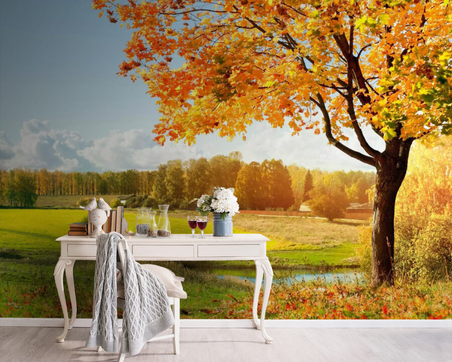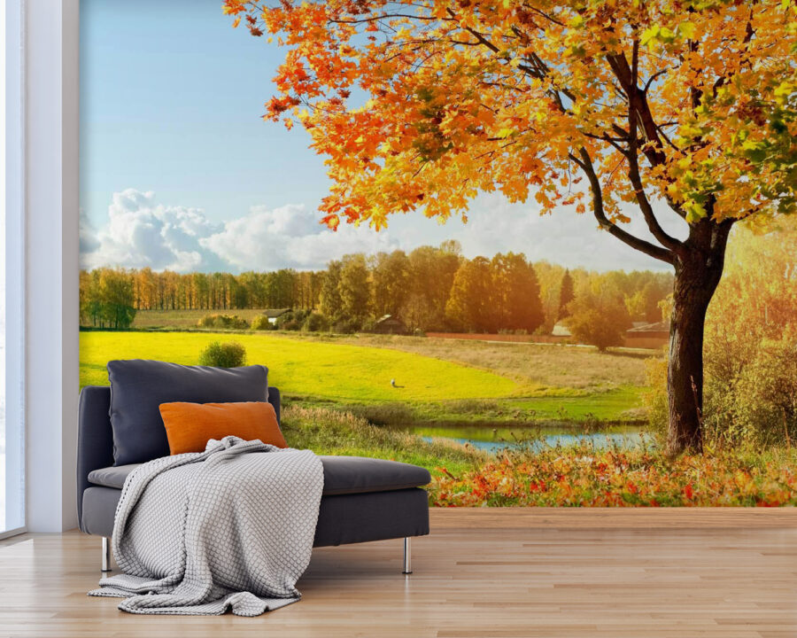 Představte si, že vstoupíte do místnosti a uvítá vás zářivá oranžová barva listí na pozadí slunečné modré oblohy. To přesně nabízí tato fototapeta „Strom s oranžovými listy na poli“. Je to jako každý den vdechnout čerstvý vzduch. Představte si příjemná rána, kdy popíjíte kávu a váš pohled se upírá na tento úchvatný obraz, který zachycuje krásu přírody. Může vás inspirovat k spontánním snům o líných podzimních odpolednech nebo rodinných piknikech. Je ideální pro proměnu nudného prostoru v něco živého a teplého. Navíc vyvolá pestré konverzace – kdo by neměl rád příjemné rozhovory o přírodě? Vytvořte si příjemnou atmosféru!