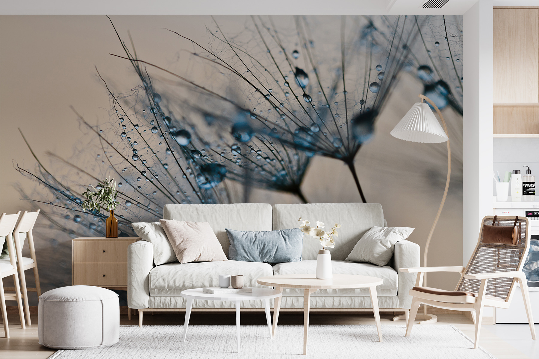 Už jste si někdy představovali, že proměníte nevýraznou stěnu v klidné, přírodou inspirované mistrovské dílo? Podívejte se na nástěnnou malbu “Kapky rosy na pampeliškových semínkách”. Tato nástěnná malba není jen obrazem, ale i náladou – každá jemná kapka rosy třpytící se na opeřených pampeliškových semínkách vás může přenést do klidné ranní procházky po zahradě. Je to jako přenést trochu snového venkovního kouzla přímo do vašeho obývacího pokoje nebo kanceláře. Ideální pro každého, kdo chce, aby jeho prostor působil o něco klidněji a kouzelněji. Představte si, že sem vejde přítel a řekne: “Páni, to je tak osvěžující pocit.” A pak se vrátí. Rozhodně to vytvoří prostředí pro rozhovory, chvíle odpočinku nebo třeba jen zírání do přírody místo práce. A ty drobné kapky rosy? To jsou drobné detaily, které dělají vše! Čistý a přitom podmanivý, možná právě to je ten stylový dotek, o kterém jste nevěděli, že ho potřebujete.