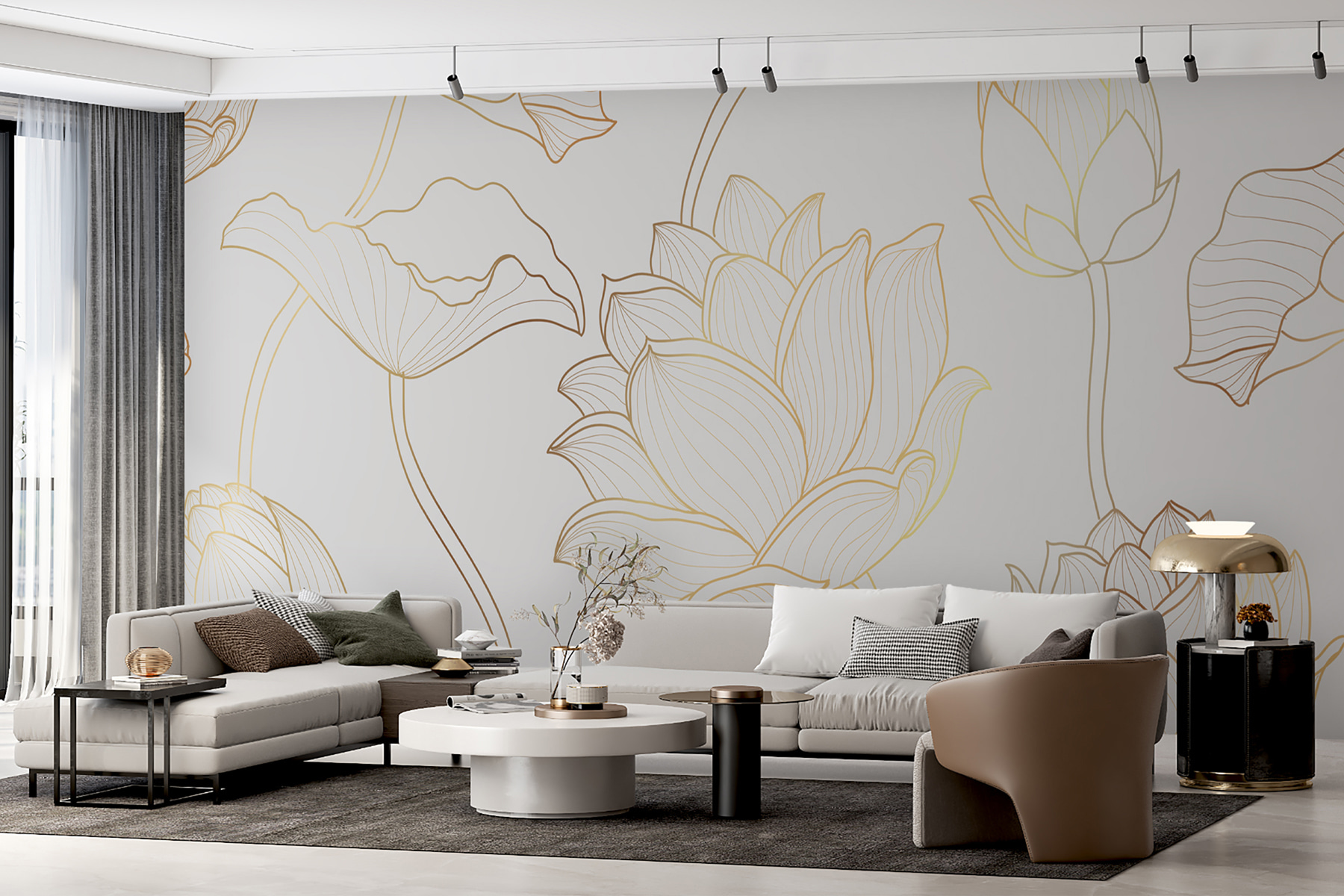 Podívejte se na tuto úžasnou nástěnnou malbu s názvem “Elegantní lotosové květy na jemném pozadí”. Je ideální pro dodání klidné a sofistikované atmosféry vašemu prostoru. Představte si, že se probudíte do elegantně nakreslené zahrady kvetoucí přímo na vaší zdi. Díky jemným odstínům a jemným liniím máte pocit, že vám květiny šeptají sladké vzkazy.