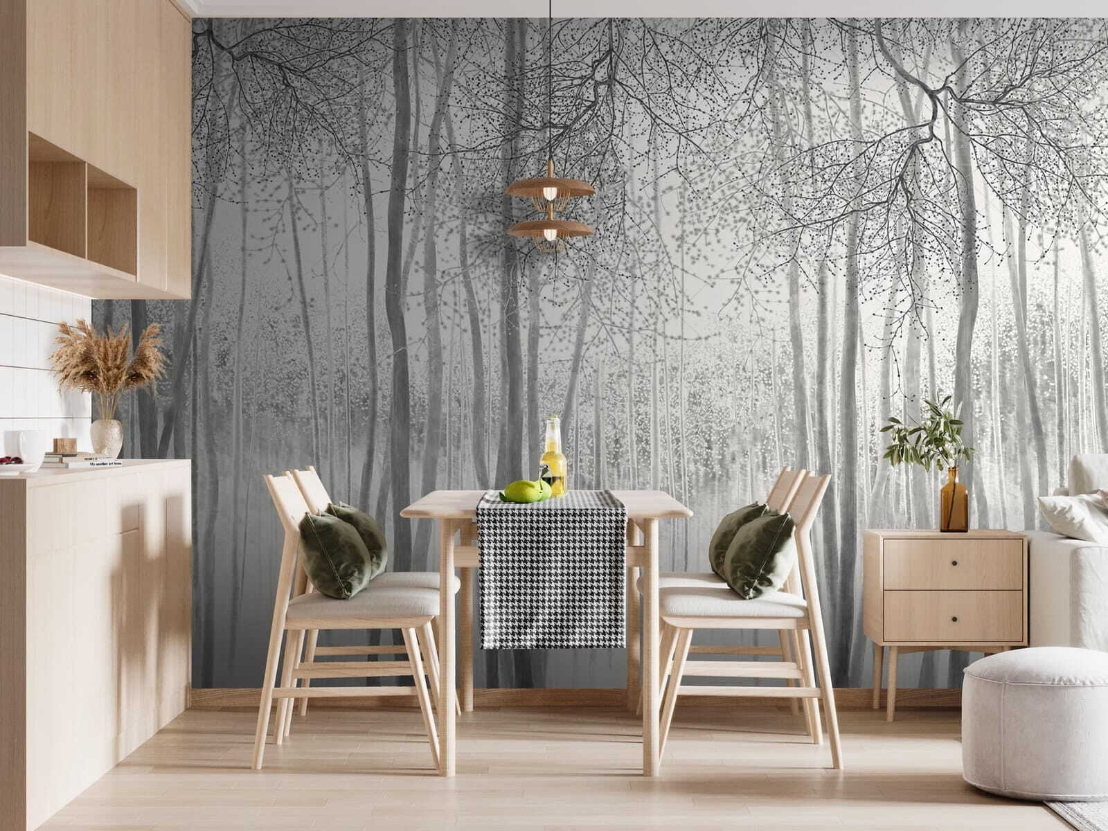 Proměňte svůj prostor v klidnou zimní říši divů s touto úchvatnou tapetou „Skupina stromů v zasněženém lese“. Představte si, že vstupujete do tichého lesa, kde sníh jemně pokrývá zem a stromy stojí vzpřímeně, ozdobené jemnou jinovatkou. Je to všechno o té klidné atmosféře, že? Představte si, jak se zachumláte s horkým šálkem kakaa a máte pocit, že jste obklopeni přírodou, aniž byste opustili svůj obývací pokoj. Jemné černobílé odstíny dodávají nádech elegance, zatímco snová scenérie vybízí k fantazírování o zasněžených dobrodružstvích. Tato tapeta, která je ideální pro útulný koutek nebo výraznou stěnu, dodá každému prostoru teplo a šarm. Kdo potřebuje zimní oblečení, když se můžete každý den zahalit do této útulné atmosféry?