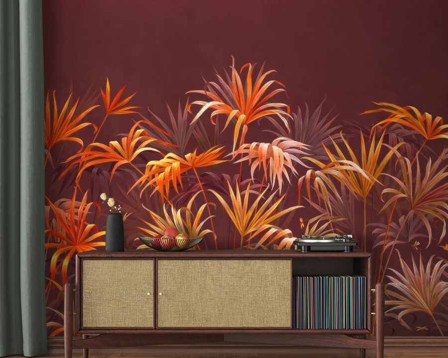 Podívejte se na tuto skvělou nástěnnou malbu – jmenuje se “Vibrující zeleň na hnědém pozadí”. Je to v podstatě jako vstoupit do tropické džungle, aniž byste museli opustit svůj dům. Exploze živých listů vynikne přímo na sytě hnědém pozadí, takže je to útulné a dobrodružné zároveň. Představte si, že vejdete do obývacího pokoje a máte pocit, že jste právě vstoupili do exotického ráje. Skvělý začátek konverzace, že? Je ideální pro každého, kdo touží po kousku přírody, ale není připraven věnovat se péči o skutečné rostliny. Pokud tedy chcete svůj prostor ozvláštnit něčím trochu divokým a krásným, tato nástěnná malba vás dostane.