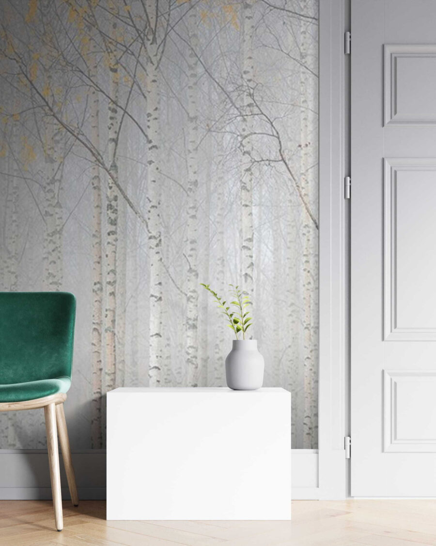 Představte si, že pokaždé, když vejdete do svého pokoje, vstoupíte do mlhavé říše divů. Přesně taková je tato nástěnná fototapeta “Skupina stromů v mlžném lese”. Křehké břízy stojící tiše v mlze vytvářejí uklidňující, snovou atmosféru. Ideální pro útulné dny strávené doma s knihou a šálkem čaje. Je to jako malý kousek přírody přímo na vaší zdi – bez zablácených bot. Tato nástěnná malba dodá vašemu prostoru nádech klidného lesního kouzla, díky němuž bude působit klidně a nadčasově. Ideální pro milovníky přírody nebo pro každého, kdo chce do svého domova vnést trochu lesního kouzla. Ať už se jedná o obývací pokoj, ložnici nebo třeba domácí kancelář – díky ní bude vše působit o něco kouzelněji.
