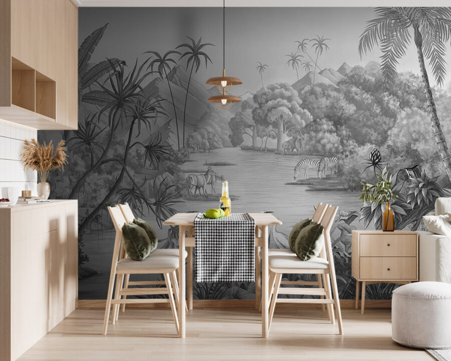 Cítíte se dobrodružně? Tento potisk “Fototapeta Zebras Drinking Water” je víc než jen dekorace – je to jako nahlédnout do tajné oázy džungle. Představte si, že popíjíte ranní kávu, zatímco zebry, tyto stylové pruhované divy, si dopřávají u klidné vodní tůně. Není to jen umění, je to minidovolená od shonu. Tato nástěnná malba, která je ideální pro dodání nádechu divočiny do vašeho prostoru, v sobě mísí svěží vibrace stromů džungle s klidným kouzlem africké divočiny. Považujte ji za jemné pošťouchnutí svého dobrodružného ducha přímo na zdi – letenku nepotřebujete!