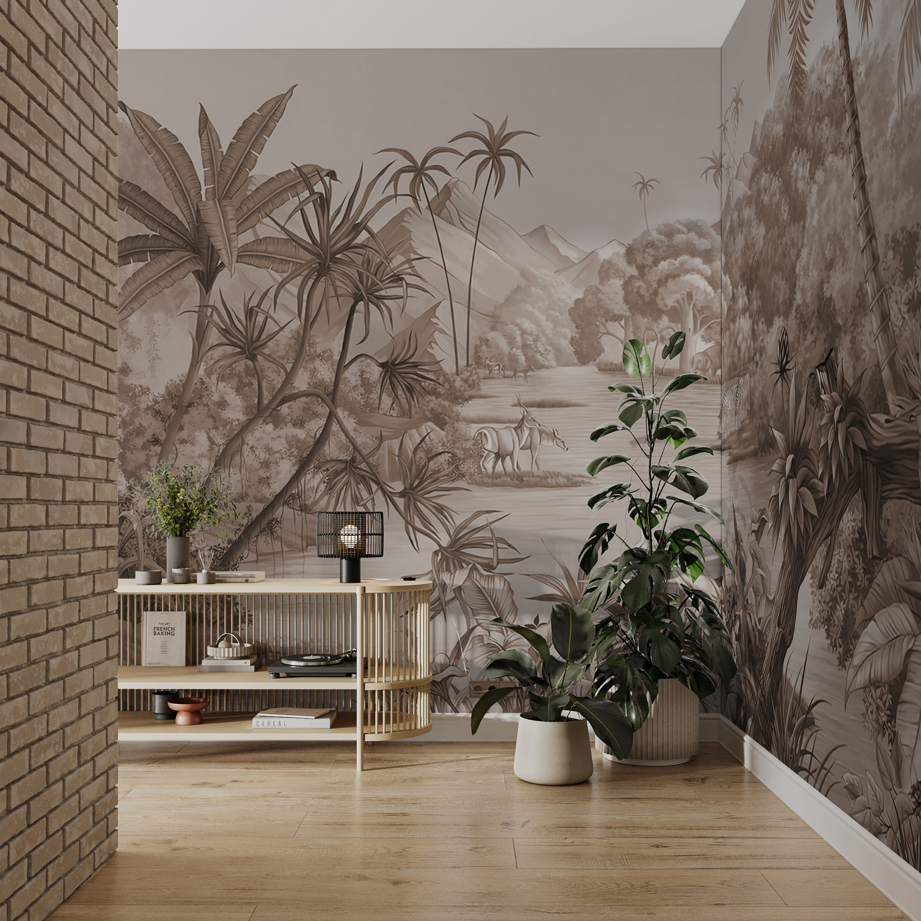 Proměňte každou místnost v tropický únik s touto úžasnou fototapetou s živým výjevem džungle. Představte si, jak lenošíte a obklopují vás zvuky přírody, zatímco se ladná zvířata proplétají bujnou zelení. Zemité tóny a složité detaily této fototapety vytvářejí klidnou atmosféru, takže každý pohled na ni připomíná mini dovolenou. Ideální pro útulný koutek nebo živý rodinný pokoj, vybízí k hřejivosti a dobrodružství. Představte si, že popíjíte kávu a přitom sníte o divoké džungli – kdo by to nechtěl? Přeneste kousek přírody do interiéru a sledujte, jak vaše stěny ožívají!