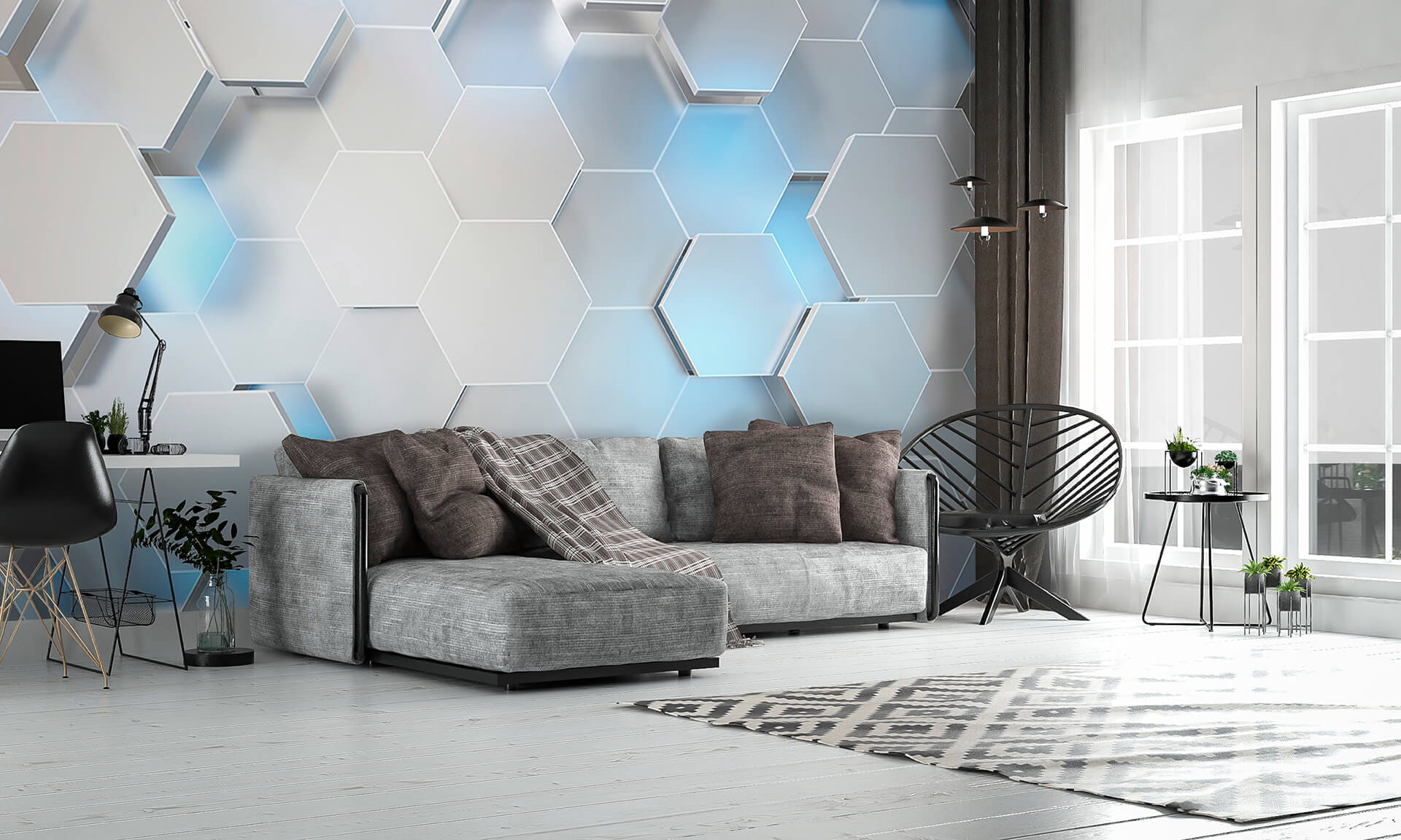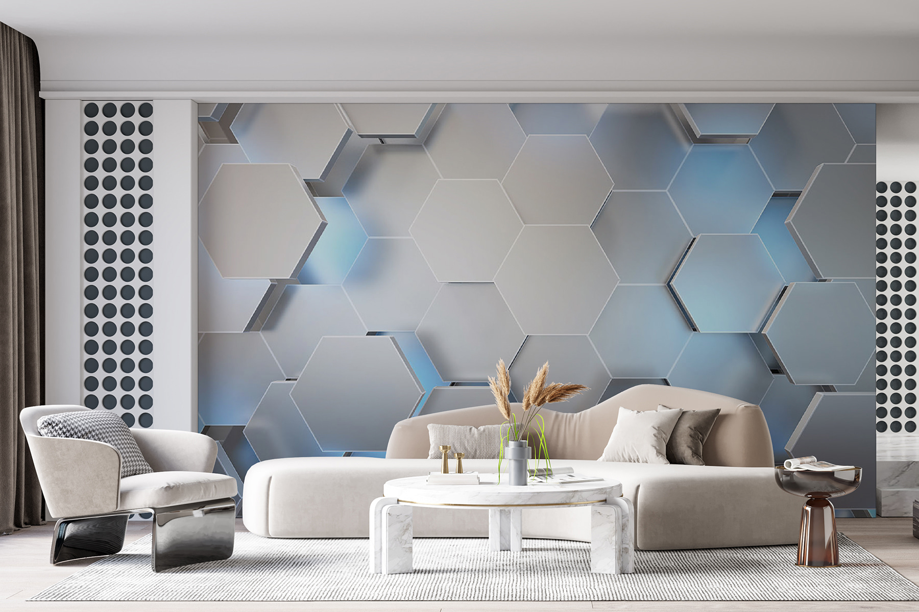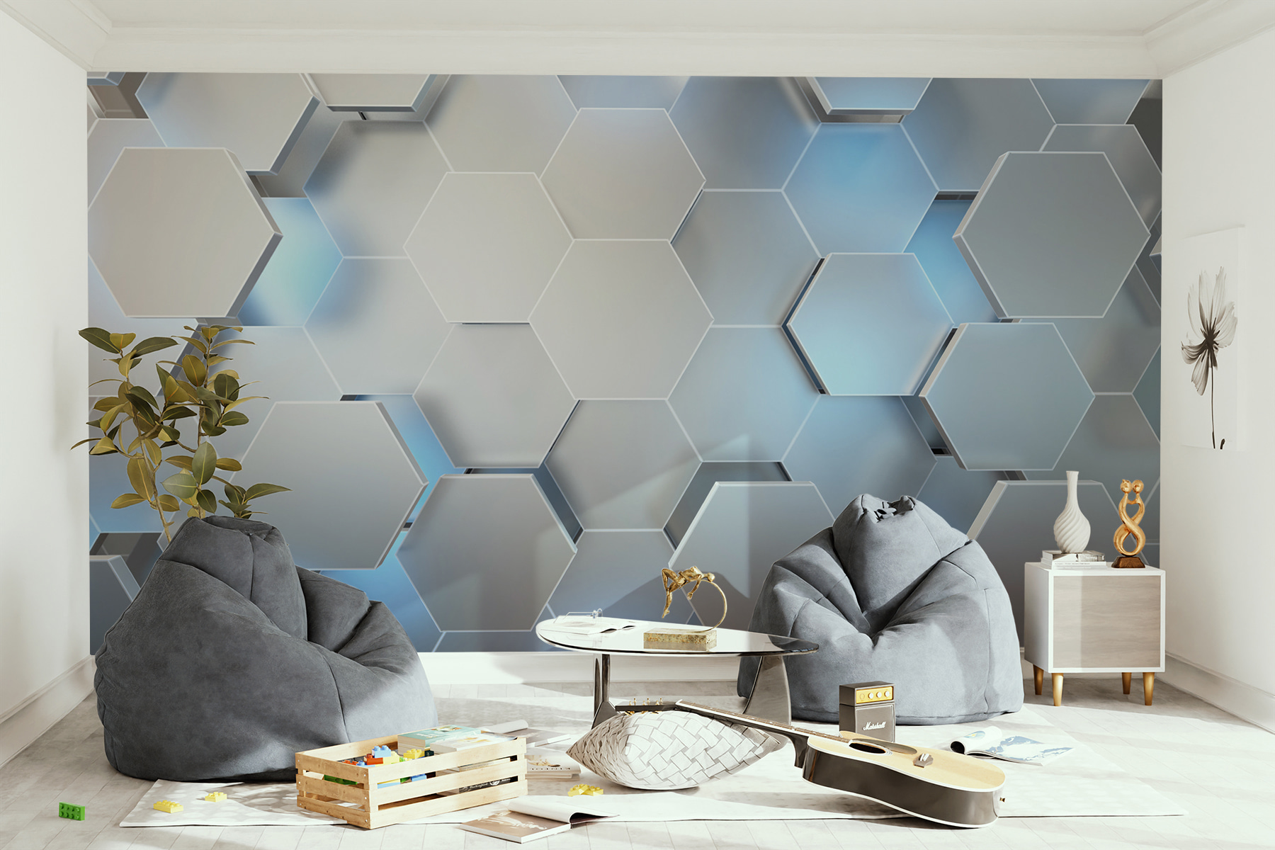 Chcete ozvláštnit svůj prostor? Tato fototapeta má úžasný šestiúhelníkový vzor, který působí jako chladivý vánek za slunečného dne. Je dostatečně abstraktní, aby rozproudil tvůrčí šťávy, ale zároveň dostatečně strukturovaný, aby udržel pocit rovnováhy. Představte si, že vejdete do svého pokoje a okamžitě se cítíte inspirováni nebo možná jen trochu fantazie. Přátelé se možná dokonce nakloní a řeknou: “Páni, kde jsi to našel?”. Navíc je univerzální – ideální do obývacího pokoje, kanceláře nebo třeba do útulného čtecího koutku. Dopřejte svým stěnám proměnu, která bude stejně jedinečná jako váš styl!
