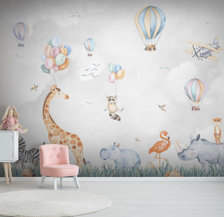 Tady je trocha rozmarů pro prostor vašeho dítěte! Nástěnná malba “Hroch v trávě” je naprosto okouzlující. Představte si, že vejdete do pokoje a budete si připadat jako na kouzelném safari – vznášející se horkovzdušné balóny, zvířata jako žirafy a zebry, která se jen tak chladí na vysokých travnatých polích. Dokonce i drzý mýval držící balónky! Tato nástěnná malba přináší živou, hravou atmosféru, kterou děti – i dospělí – zbožňují. Skvěle se hodí do dětského pokoje, kde podněcuje fantazii a dobrodružství. Představte si, že příběhy před spaním mají zcela nové kulisy a každý večer se stane mini dobrodružstvím. A kdo by nechtěl mít v pokoji veselého hrocha? Určitě se s ním dá začít mluvit. Připravte se na óóó a ááá od malých (i velkých!) dětí. Není to jen dekorace, je to radost stříkající na zeď.