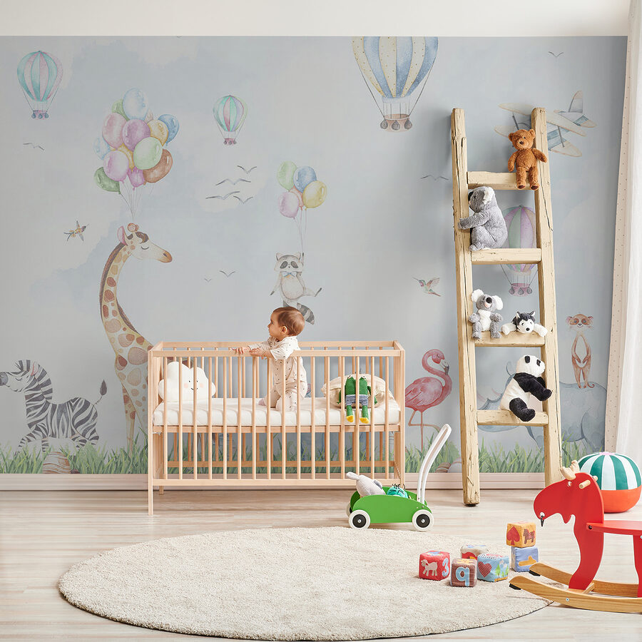 Chcete vylepšit dětský pokoj a dodat mu šmrnc? Podívejte se na tuto rozkošnou nástěnnou malbu, na které jsou nosorožec, liška a jejich rozmarní kamarádi v centru dění! Představte si klidnou akvarelovou říši divů plnou horkovzdušných balónů, hravých zvířátek a oblohy, která působí jako měkké, snové objetí. Tato nástěnná malba není jen krásná – je kouzelná. Představte si to: vaše děťátko se každé ráno probouzí do safari plného úsměvů, kde žirafa drží balónky a mýval je připraven na průzkum. Je to jako oživlá pohádková kniha, která vybízí k nejrůznějším dobrodružstvím a hihňání. Je ideální pro podnícení kreativity a zpříjemnění času před spaním. Přidejte si tento rozkošný kousek na zeď a sledujte, jak se rozvíjí radost!