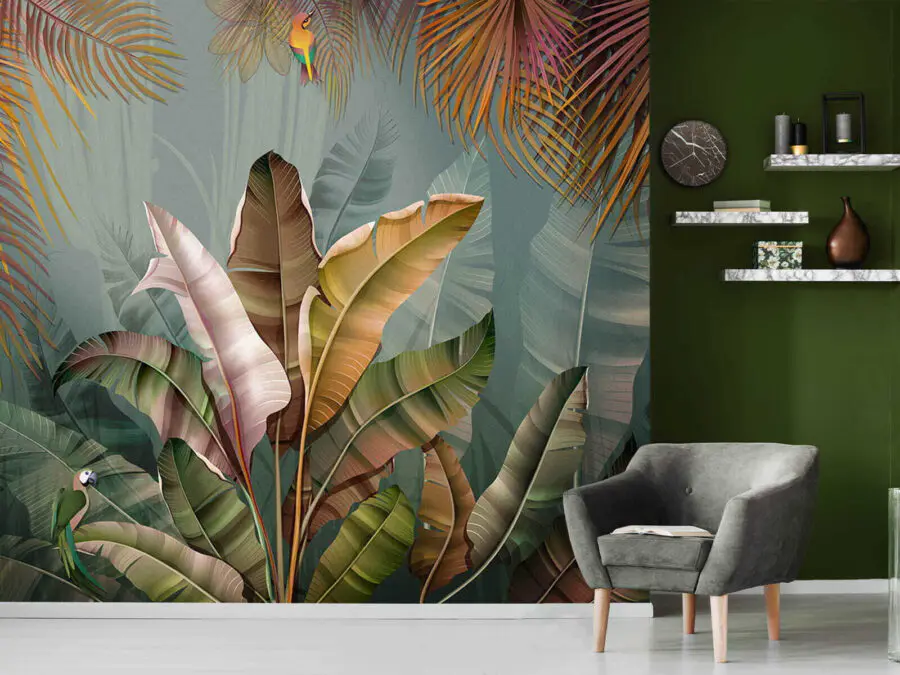 Představte si, že vejdete do místnosti a máte pocit, že jste právě vstoupili do bujné, živé džungle – to je kouzlo nástěnné malby “Tropická džungle s živými listy”. Překypuje životem a barvami, od sytě zelené až po růžové a oranžové. Tato fototapeta je ideální pro dodání tropického nádechu vašemu prostoru a při každém pohledu na ni si připadáte jako na mini dovolené. Neslyšíte jen šustění listí a vzdálené volání exotických ptáků? Je to živé, ale zároveň uklidňující, něco jako když se kolem vašich stěn ovíjí klidná energie přírody. Ideální pro každého, kdo má rád jedinečný dekor, který našeptává dobrodružství a relaxaci. A navíc, myslete na to, že se s ním dá začít mluvit – ne každý den se vám stane, že řeknete, že ve vašem obývacím pokoji je džungle! 🌿