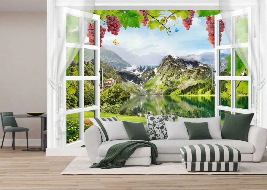 Napadlo vás někdy, že by vaše stěna mohla být jako portál do zasněného horského útočiště? Tato nástěnná malba “Budova se stromy v pozadí” by mohla být tou pravou volbou. Je ideální pro každého, kdo už má dost zírání na prázdné stěny – vážně, kolik béžových stěn člověk vydrží? Představte si, že se každý den díváte na tento svěží, klidný výhled s těmi živými vinnými keři a klidným jezerem odrážejícím vrcholky hor. Je to jako mini dovolená bez letenky a balení. Tato nástěnná malba spadá do různých kategorií, jako je “zvětšující se prostor” a “3D”, což v podstatě znamená, že je to jako dát svému pokoji objetí – až na to, že je plná krásné přírody a vůbec není trapná. Rozhodně je to začátek konverzace a zlepšovač nálady. Připravte se na snění o piknicích a čerstvém vzduchu!